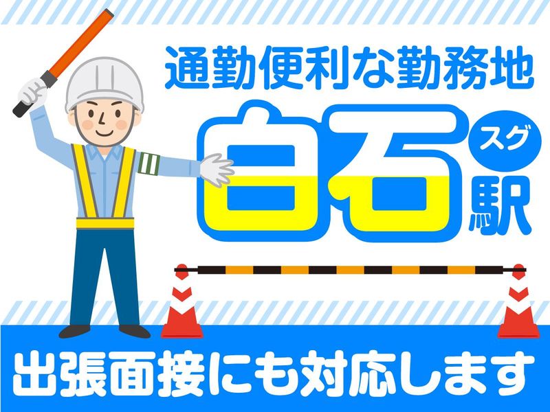 仕事内容  ̄ ̄ ̄ ̄ ̄ ̄ ̄ ̄ ̄ ̄ ̄ ̄ ̄ ̄ ̄ 未経験でも即戦力になれる <警備スタッフ>大募集! ✅日勤のみ✅日給保証あり _______________ 土木工事現場(札幌市白石区東札幌二条)での交通誘導のお仕事です。 安全に配慮しながら車両や歩行者の 誘導を行います。 男女問わず、若手~シニアまで 幅広い年代が活躍中! 免許や車がなくても活躍出来ます! ▼安定した生活が手に入ります  ̄V ̄ ̄ ̄ ̄ ̄ ̄ ̄ ̄ ̄ ̄ ̄ ̄ ̄ ✅日給1万1000円 ✅交通費全額支給 ✅日給保障あり ✅入社時費用負担 (現場にでるまでの費用をサポート) ▼働きやすいPOINT  ̄V ̄ ̄ ̄ ̄ ̄ ̄ ̄ ̄ ̄ ̄ ̄ ✅週2日~OK ✅日勤のみ ✅車・バイクでの通勤OK ✅現場への送迎対応もあり ✅研修あり ✅勤務地多数 ✅直行直帰OK ✅基本的に日曜はお休み ▼こんな方大歓迎です  ̄V ̄ ̄ ̄ ̄ ̄ ̄ ̄ ̄ ̄ ̄ ̄ ■未経験から挑戦したい方 ■経験を活かして働きたい方 ■あと少し収入をUPしたい方 ■しっかり稼ぎたい方 ■Wワークで働きたい方 ■安定して長く働きたい方 ■カラダを動かすことが好きな方 ▼勤務先多数あり  ̄V ̄ ̄ ̄ ̄ ̄ ̄ ̄ ̄ ̄ ̄ ̄ 札幌市及び江別市周辺 ご希望のエリアやお住まいから 通いやすいエリアなどありましたら ご相談ください。 ※現場への送迎対応もあり ※車・バイクでの通勤もOK