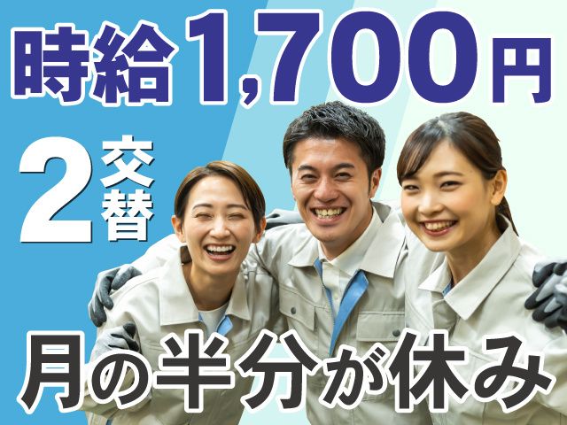 仕事内容 \高時給1,700円!/ 月の半分がお休みでプライベートも充実! <注目ポイント> ・3日働いて3連休を繰り返す、3勤3休制 ・年間休日183日 ・未経験OK/資格・経験不問 ・直接雇用登用のチャンスあり ・ネイル、ピアスOK!髪色自由 <仕事内容> 工場で製品の製造に関するお仕事です。 以下のいずれかの業務をご担当いただきます。 ・チップ(コイル)製造に伴う諸作業 マシンオペレーターおよび検査業務をお任せします。 ・車載用電源ユニットの組立・検査オペレーター 電動ドライバーなどの工具を使って製品を組み立てます。 検査業務もございます。 簡易的なクリーンルーム内での作業です。 ※一部作業で有機溶剤を使用します。 <職場環境> ・休憩室に無料のジュースやコーヒーあり ・社員食堂あり(安価で栄養バランスのとれた食事が可能) ※お昼時間のみ ・冷暖房完備のクリーンな作業環境 ・制服貸与 <こんな方におすすめ> ・モクモクと作業に取り組むのが得意な方 ・手先を使った細かい作業が得意な方 ・高収入を目指したい方 <前払い制度がスマホ完結に!> 働いた分を、スマホから簡単に申請できます。 日払い・週払いどちらにも対応しています。
