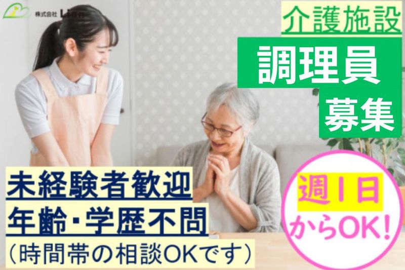 【アピールポイント】 年齢・学歴不問!介護施設での調理員募集! ●未経験者歓迎 ●週1からOK ●希望日お休み相談可