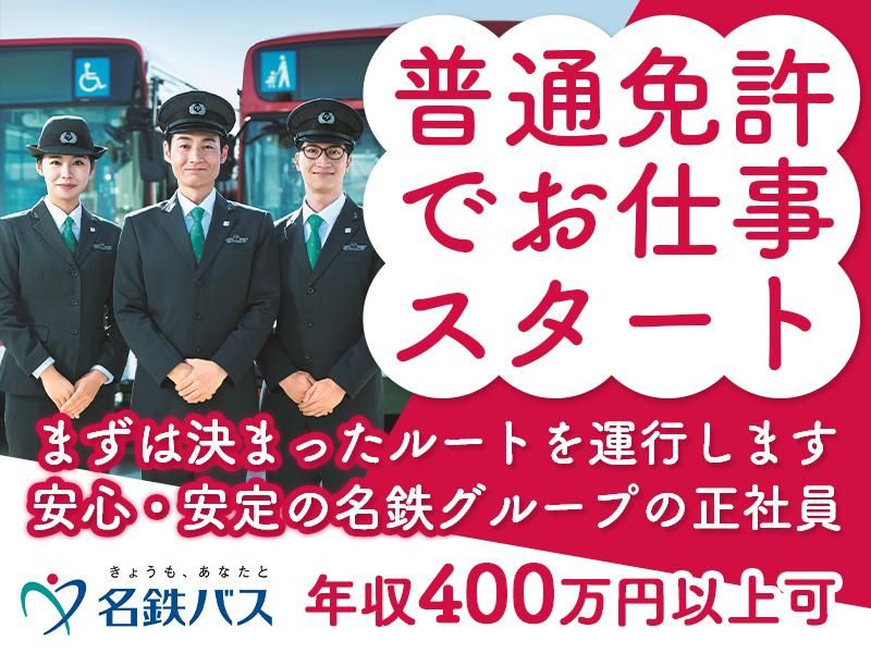 仕事内容 ✅名鉄グループの一員として、岡崎市内を中心に路線バスの運転業務をお任せします。 地元の方々の通勤・通学・買い物など、日常を支えるやりがいある仕事です。 ✅主な仕事内容: ・バスの安全運転・運行管理(住宅街〜商業エリア中心) ・乗降時のご案内やお客様対応 ・点呼・車両点検・日報記入などの基本業務 ・研修修了後は、経験に応じて契約輸送・貸切バスへのステップアップも可能 ✅入社後は約3ヶ月の研修で基礎からスタート。 独自の教習コース・教習車両を使い、運転技術・安全運行・接客マナーを段階的に学べます。 ✅岡崎営業所は、住宅地と商業施設を結ぶ生活路線が中心。 地域に密着した運行で、顔なじみのお客様も多く、感謝の言葉を直接もらえる環境です。 【アピールポイント】 ⏩名鉄グループならではの安定した経営基盤と整った職場環境。 ⏩年間休日121日、賞与4ヶ月分+α(2024年度実績)など、長く安心して働ける待遇です。 ⏩地元勤務で岡崎市に根ざした働き方が叶います。 ⏩運転だけでなく、お客様とのやりとりを大切にできる方にぴったりです。