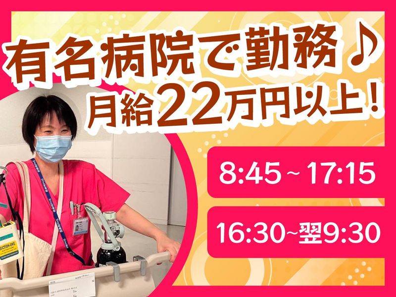 仕事内容 \医療業界なら好条件で働けます!/ ⭐月給22万円以上 ⭐残業ナシ&週休2日制 ⭐医療の資格は不問 「介護の仕事は好きだけど、 人手が足りなくて残業ばっかり…」 「看護師をしていたんだけど、 ガッツリ夜勤のあるシフトが 体力的にちょっとキツくなってきた… なるべく日勤で働きたい… さらに言えば休みも取れるところが良い…」 弊社では、こんなお悩みのある 介護業界や医療業界の別職種からの 転職者が多数活躍しています! いままで培った経験や知識を活かして 収入も働く条件もアップ♪ さらに働きながら資格取得して スキルアップやステップアップも可能◎ ∴‥∵‥∴‥∵‥∴‥∴‥∵‥∴‥∵ 【 お仕事内容 】 看護師さんのサポートや患者様の身辺のお世話をお任せ。 ●シーツ交換・ベッドメイキング ●お食事のセッティング ●病棟・病室内の清掃 ●物品補充(手袋、エプロンなど) ●メッセンジャー業務 ●患者様移動時の付添い・補助、移送 など、看護師さんが患者さんのケアに より集中できるように、周辺業務をお手伝いすることが看護アシスタントのお仕事です! その日1日のやることは決まっているので あっという間にお仕事が終わるのも魅力◎ 年齢も性別も気にせず 未経験から働ける看護助手のお仕事♪ 気になった方はお気軽にご応募ください! ∴‥∵‥∴‥∵‥∴‥∴‥∵‥∴‥∵ \スタッフインタビュー!/ ★50代主婦さん 以前はデイサービスで介護の仕事を していました。 人手が足りなくて休日出勤や残業ばかりで 体力的にきつくなって辞めました。 同じ介護業界で転職を考えていましたが たまたま見つけた看護助手というこの仕事、 まさに私の希望にピッタリの条件でした♪ 働きながら資格取得ができるので 介護系の資格を取って 将来のためにスキルUPしたいです◎ ∴‥∵‥∴‥∵‥∴‥∴‥∵‥∴‥∵ ⭐ゆくゆくはステップUPも… 長く続けて現場での業務に慣れてきたら、 新人スタッフのトレーナー業務もお任せ! 先輩から学んだことを、今度は後輩たちに 教えてあげてください♪ 介護福祉士の資格取得支援もあります◎ ⭐東証上場グループだから、安心・安定の職場環境! \勤務先は有名病院…!/ タスクフォースの正社員として雇用させていただき、お取引のある大手医療機関(岸和⽥市内)で”看護助手”として勤務いただくスタイルです◎ <近隣エリア内の勤務地変更あり> 最初の弊社提携先病院にて勤務いただいた後、近隣エリア内の別弊社提携先病院に勤務地が変更されることもあります。