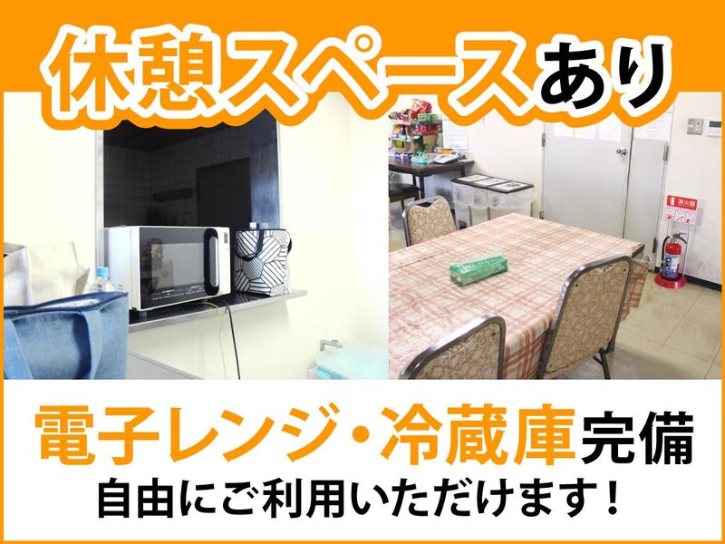 職場環境 ⭐働きやすい職場です! 冷蔵庫や電子レンジ、 お菓子の販売ブースを備えた 休憩室があります。 畳を敷いたスペースもあり、 休憩時にはお昼寝もOK! 仕出し弁当の購入もできますよ。 喫煙所:喫煙所あり(屋外)