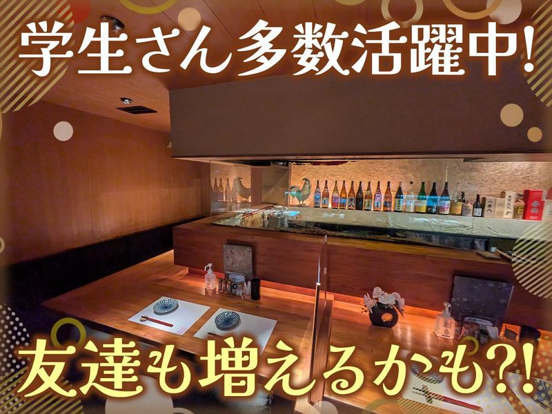求めている人材 未経験歓迎 学生活躍中 主婦活躍中 扶養内勤務 Wワーク歓迎 調理が不慣れな方も歓迎 ・これから接客マナーをしっかり学びたい方 ・お客様に美味しい料理を提供したい方 ・接客を通じてお客様に喜んでもらいたい方 ・チームワークを大切にして、みんなで協力しながら楽しく効率的に働ける方 ・料理提供やお客様対応を通じて、少しずつスキルアップしたい方 店主自身が、「スタッフが良い経験を積める場所でありたい」「お客様との垣根なく、仲良く成長していきたい」という想いを持っており、 卒業するときに「楽しかった」と思える職場であることを大事にしています。 「せっかくなら楽しく、前向きに、いろいろな人と関わる。」そんなバイト先を探している方は大歓迎です!