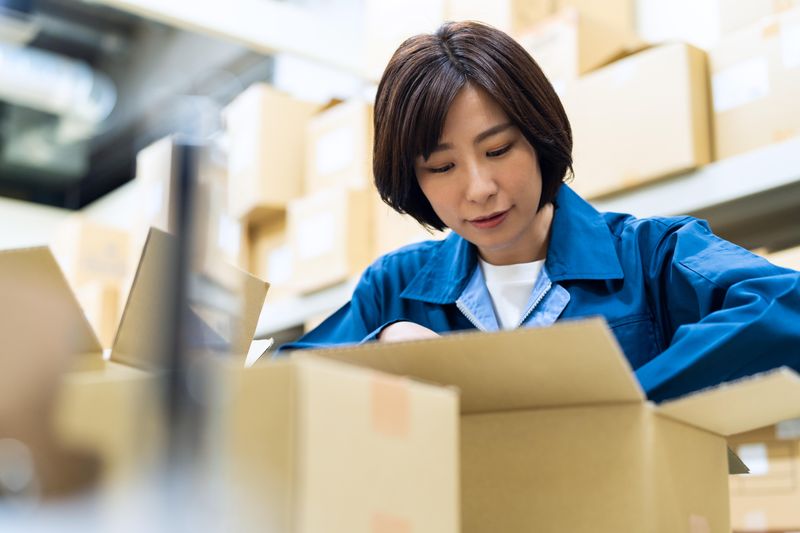 物流倉庫内での電子機器部品のピッキング・梱包作業