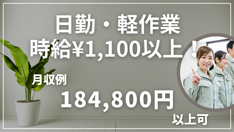 仕事内容 日勤&土日祝休み! 年間休日125日!時給1,100円以上可! 30代~50代の男女活躍中! 月収例184,800円以上可能! 就業場所は新庄市役所から車で15分! 【注目ポイント】 ・日勤&土日祝休み ・男女共に活躍中 ・未経験者大歓迎 ・30代~40代活躍中 ・スキルアップできる! ・温度は一定に保たれていて快適な環境です! ・弊社スタッフ活躍中 人気の製造業! コネクタ製品などを製造をしている会社でのお仕事になります。 拡大鏡・顕微鏡を使用しての製品の検査や目視検査をお願いします。 工程が様々ありますので、適正や希望に合わせて就業可能です。 未経験者はスキルアップするチャンス! 経験者は経験を活かせます! モノづくりの楽しさ、やりがいを感じられるお仕事です! お仕事に慣れてくると、自分のペースでモクモクと作業ができます。 モクモク作業が好きな方や、コツコツ丁寧に仕事をしたい方にもオススメ! 集中できる作業なので、達成感もあります。 職場見学も可能です! どうぞお気軽にお問い合わせください。 【プライムゲートで働くメリット】 ・担当者に相談しやすい関係作り 「何かあったら担当者に連絡してね」と言っても、連絡しづらいですよね。 当社の営業担当は、スタッフさんが相談しやすい関係を構築できるよう心掛けています! 職場での状況確認はもちろん、世間話なども! 気軽にお話ししています。 ・「働きやすさ」を最優先! 「仕事の内容は気になるけれど、お子さんを送り出してからだと出勤時間が合わない」 という場合はぜひご相談ください! 当社スタッフが勤務時間や条件などを勤務先と交渉します。 働き方に合わせてお仕事を紹介することもできますので、 「わがままかな」と思わずにぜひご相談ください。 ・担当スタッフがお仕事探しやスキルアップをサポート! お仕事情報はもちろん、スキルアップなどについてもご相談ください! ライフスタイルの変化や、働き方、持っている資格を活かせるお仕事など、 ご希望に合わせてお仕事の紹介をしております。 ・有休消化率73%、勤続年数平均2年6ヶ月、契約終了後の再就職率38.67%の実績 契約中も契約終了後も、ライフスタイルや経験に合わせて快適に働ける環境をバックアップします! 気になることやちょっとした質問も、ぜひお気軽にお問い合わせください。