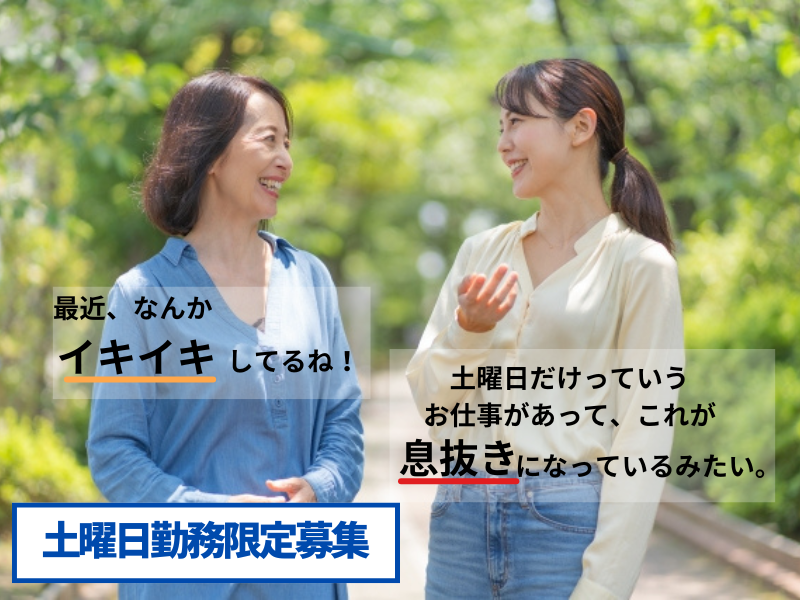 求めている人材 *未経験者大歓迎! *主婦(夫)さん、 副業・Wワーク(週40時間以上働いている方のWワーク不可)、 フリーターさんも歓迎です! *扶養内勤務もOK!ご相談ください。 / 平日は家事や子どもの用事で難しい・・・ 土曜日の1日だけ働きたい! \ そんな思いを持った方歓迎♪ *久しぶりの社会復帰でブランクがある方、 家庭と両立して働ける職場を探していた方にもピッタリです。