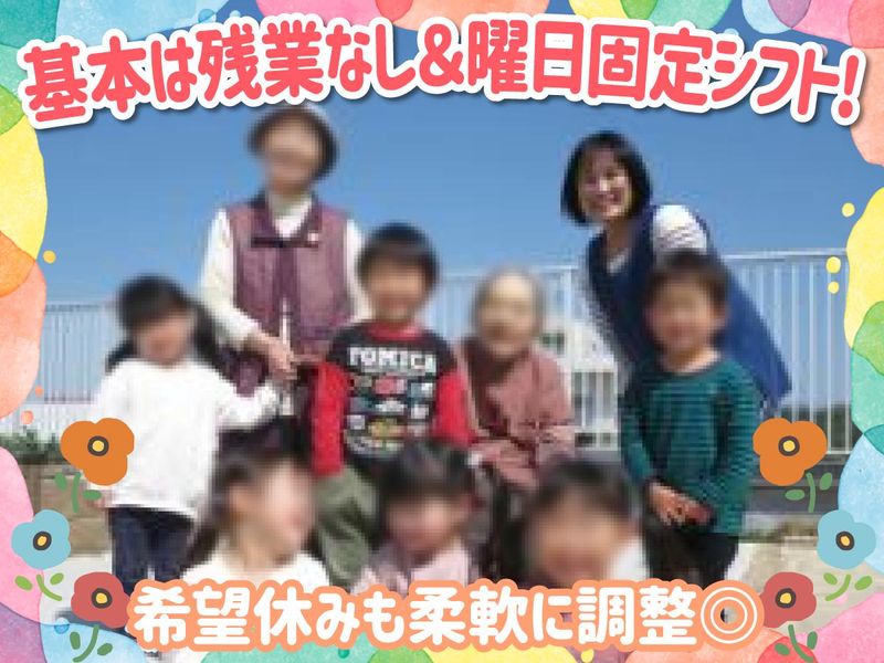 求めている人材 【必須:児童発達支援管理責任者】 ★資格があれば未経験者歓迎 ★ブランク歓迎&主婦・主夫歓迎 ★仕事復帰したい方にもオススメ 経験不問×学歴不問×年齢不問! 児発管の資格をお持ちの方であれば 実務経験がない方もご応募歓迎します! ◎誰にでも思いやりを持てる ◎全体を見て行動できる ◎チームワークを大事にできる ◎周囲の意見に耳を傾けられる そんな気配り上手&聞き上手な方なら 積極的に採用します。 結婚や出産、介護などを機に 一度は仕事を離れてしまった方も 復帰しやすい環境ですので、 お気軽にご応募してくださいね♪ ✨\こんな方にオススメ/✨ ・もう一度キャリアを積み上げたい ・スキルアップやキャリアアップのため ・児童福祉の仕事で安定したい ・ワークライフバランスを大事にしたい ・人間関係が良い職場で働きたい ・コミュニケーションが取れる職場が良い ・やりがいを持って働きたい ・セカンドキャリアとして 応募のきっかけは何でもOK! 「家庭優先で働きたい」という 主婦・主夫さんも応援しています。 実際に、当施設のスタッフは 先輩主婦や子育てママが活躍中! 女性中心の職場で 助けあいながら働いていただけます。