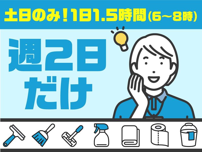 仕事内容 *-*-*-*-*-*-*-*-*-*-*-*-* ✨土日のみ✨早朝1.5時間だけ★ 心療内科の院内清掃のお仕事  ̄V ̄ ̄ ̄ ̄ ̄ ̄ ̄ ̄ ̄ ̄ ̄ ̄ ̄ ̄ ̄ (*'▽')診療時間前だから 黙々と集中できる環境です♪ ✅制服貸与 ✅駅徒歩2分で通勤便利 *-*-*-*-*-*-*-*-*-*-*-*-* ■WワークOK! ■健康維持にピッタリ♪ ■お小遣い稼ぎにも◎ ≪具体的な業務内容≫ ✅カーペット掃除機掛け ✅トイレ・流し台の清掃 ✅什器備品の拭き上げ など 業務内容自体は、基本的なものがメインなので 特別な道具は使いません◎ ◎コツコツ、モクモク作業が好きな方にぴったり! ………………………… ✨お仕事の魅力!✨ ………………………… ・扶養内勤務もOK♪ ・黙々と作業ができます♪ ・幅広い世代のスタッフが活躍できます◎ ・家事の経験が活かせちゃう …………………………………… ✨家事の延長で働けます!✨ …………………………………… 清掃に使う道具で特殊なものはなく、 作業自体もとても簡単なので 普段のお掃除が得意な方であれば 清掃業未経験の方も大歓迎◎ 黙々と働けますよ! …………………………………… ✨20代~60代まで活躍中✨ …………………………………… 子育てが落ち着いて復職した主婦さんや 定年後のお小遣い稼ぎで働くシニアまで 幅広い年代の方が活躍中♪ 別のお仕事との掛け持ちもOK! ご家庭の都合や本業、私生活に合わせて 無理なく続けられるお仕事です◎ …………………………………… ✨週2日、1日1.5時間で募集✨ …………………………………… 週2日(土日)勤務できる方募集♪ 基本的に残業はありません♪
