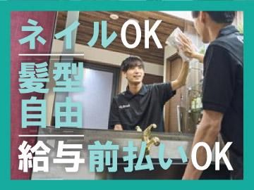 【保険制度】 労災保険 待遇・福利厚生 ※適用されない社会保険がある理由:法令による 【福利厚生】 ・昇給 ・交通費支給 ・スタッフ割あり ・髪色、ピアス、ネイル自由 ・制服貸し出し ・前払い制度(稼働分の70%) ・社員登用有り ・まかない有(1食150円)