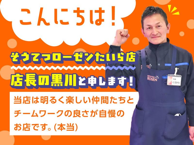 仕事内容 ⏩店長より… 「こんにちは!」 そうてつローゼンたいら店 店長の黒川と申します! 当店は明るく楽しい仲間たちと チームワークの良さが自慢の お店です(本当)。 未経験大歓迎! 丁寧にひとつひとつ教えますので心配なし! 勤務日数や曜日などの相談 もちろん乗ります。 気になることは何でも聞いてください! まずはお気軽に面接にご応募しませんか? ご連絡お待ちしております!  ̄ ̄ ̄V ̄ ̄ ̄ ̄ ̄ ̄ ̄ ̄ ̄ ̄ ̄ ̄ ̄ // // // ★ ☆ ★ 未経験歓迎 {*地域密着スーパー*} ⌒⌒⌒⌒⌒⌒⌒ ≪ 扶養内勤務OK!私生活と両立できる ≫ _/_/_/_/_/_/_/_/_/_/_/_/_/_/_/_/_/_/_/ P┃O┃I┃N┃T┃ ━┛━┛━┛━┛━┛ □:経験不問!ブランク復帰も大歓迎◎ □:柔軟シフト!働き方の相談OK◎ □:髪色自由!自分らしいスタイルで◎ □:お買い物割引あり!年間2万円分お得◎ □:社員登用制度あり!キャリアアップも◎ □:快適♪車通勤可(閉店迄勤務のレジ限定) _/_/_/_/_/_/_/_/_/_/_/_/_/_/_/_/_/_/_/ 【 仕事内容 】 食品スーパー「そうてつローゼン」での レジスタッフをお任せします。 \\ セミセルフレジ導入 // ●商品スキャン→タッチパネルでピッと登録 >>これだけのカンタン・シンプル作業! ※お釣りは機械が自動で出してくれるので 計算ミスなどの心配ナシ◎ _/_/_/_/_/_/_/_/_/_/_/_/_/_/_/_/_/_/_/ ♪ 未経験&ブランク復帰も大歓迎 ♪  ̄ ̄ ̄V ̄ ̄ ̄ ̄ ̄ ̄ ̄ ̄ ̄ ̄ ̄ ̄ ̄ 20~50代の男女スタッフ活躍中! しっかりとした研修制度があるので 年齢・経験問わず安心してスタート していただけます。困ったことも 相談しやすい環境を整えています! バイトデビューやブランク復帰の方も お気軽にご応募ください♪ ♪ シフト融通バツグン ♪  ̄ ̄ ̄V ̄ ̄ ̄ ̄ ̄ ̄ ̄ ̄ 「子どもの学校行事がある」 「習い事に通いたい」 「プライベートの予定がある」 など、ライフスタイルに合わせて 無理なく働ける◎自由度高め* ♪ ヘアカラーで自分らしく ♪  ̄ ̄ ̄V ̄ ̄ ̄ ̄ ̄ ̄ ̄ ̄ ̄ ̄ 髪色自由! オシャレしてモチベーションUP* 楽しいワークライフで安定収入Get! 気分上げてこっ↑↑ ♪ 社員登用制度アリ ♪  ̄ ̄ ̄V ̄ ̄ ̄ ̄ ̄ ̄ ̄ 「安定してお仕事をしたい」 「スキルアップがしたい」 など、あなたの働き方を応援します! 頑張りをしっかり評価します◎ 『社員』として活躍したいと お考えの方、ぜひご相談ください! _/_/_/_/_/_/_/_/_/_/_/_/_/_/_/_/_/_/_/ 相鉄ローゼン株式会社とは ・*・‥‥………‥‥・*・ 「ゆたかな生活へのかけ橋」をモットーに 地域のみなさまのゆたかな生活づくりに 努めてまいりました。時流やお客さまの 変化を捉えながら、提供する商品の安全や 向上をはかり、環境問題に取り組むなど 健康で快適な生活に貢献するための 様々な取り組みに挑戦しています。