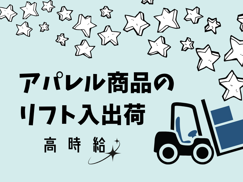 仕事内容 アパレル商品を取り扱う倉庫内で、リフトを使用した入出荷・格納作業をお任せします。 扱う商品は衣類やファッション雑貨が中心です。リフト作業は、入荷してきた商品のパレットを所定の棚へ格納したり、出荷指示のあった商品をピッキングエリアへ運ぶ工程がメイン。 また、状況により一部軽作業(商品の仕分けや検品、ラベル貼りなど)を手伝っていただく場合がありますが、こちらは未経験の方でもすぐ覚えられる内容ばかりです。 倉庫内は整理整頓されており、作業動線も分かりやすい環境。リフト経験を活かして働きたい方にぴったりのお仕事です。 #リフト経験活かせる #長期安定でしっかり働ける #軽作業ありでメリハリ