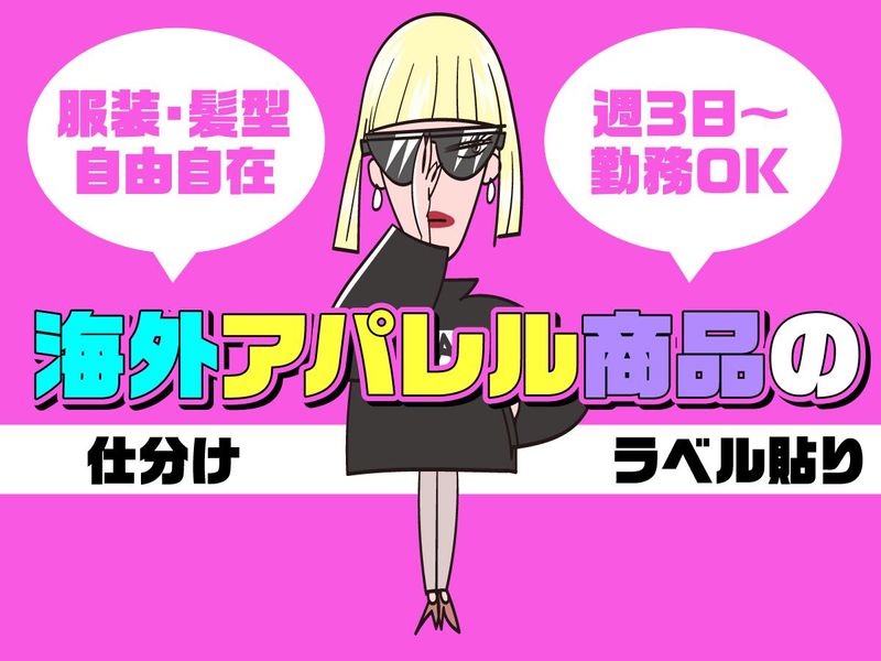 仕事内容 ✨カンタン軽作業×未経験歓迎✨ 服装&髪型自由♪ 20~50代の男女スタッフ活躍中! <オススメ案件> ⭐海外アパレル商品の仕分け・検品・梱包作業♪ [詳細] ■商品の仕分け ■傷や汚れがないかチェック ■梱包作業 ■ラベル貼り ■出荷準備 など マニュアル通りに作業を 進めるだけの単純作業なので とてもシンプルなお仕事です! <ポイント♪>----------- ✅冷暖房完備の倉庫で快適勤務 ✅軽作業中心!力仕事が苦手な方でも安心 ✅髪型・服装自由♪オシャレも楽しめる ✅週3日~OK◎プライベートと両立可能 ------------------ ◇◆◇ 長期勤務大歓迎 ◇◆◇ 安定して長期で働けるから、 しっかり稼ぎたい方にオススメ◎ ◇◆◇ 未経験の方も大歓迎 ◇◆◇ 主婦(夫)・学生・フリーターなど 20代~50代迄幅広く活躍中! お友達同士での応募も大歓迎♪ 軽作業がはじめての方、 モクモクとお仕事をしたい方♪ お気軽にご応募下さい。 初めての方でもすぐに覚えられます◎ ー ▼働きたい理由は何でもOK! 「急な出費でピンチ・・・」 「家計の足しにもう少し稼ぎたい・・・」 「急にヒマになった・・・」 など ー ★★<WEB面談も可能♪>★★ “来社不要"のWEB面談も選べます! PCやスマホがあれば 家からでも参加可能です♪ ー ★★<お給料がスグGETできる♪>★★ 【日払いOK】(規定あり) 【週払いOK】(金〆切、翌金支払い) 支払方法はその都度変更可能◎ 日払い&現金手渡しOK!! 「急な出費でお財布ピンチ・・・」 「週末に推し活があって・・・」 などなど、日払いOKだからこそ安心! ー ★★<いつでもお仕事探せる♪>★★ 365日稼働なので、 スグに稼ぎたい方にはおススメ! シフト申請はスマホでポチッ!  ̄ ̄ ̄ ̄ ̄ ̄ ̄ ̄ ̄ ̄ ̄ ̄ ̄ ̄ 働きたいなと思ったら・・・ スマホをタッチして予約するだけ! ー <一つでも当てはまったらご応募を♪> ✅簡単に覚えられる仕事がいい ✅空き時間だけ働きたい ✅コツコツ&黙々と働きたい ✅友達と一緒に働きたい ✅ちょっとしたお小遣い稼ぎをしたい などご要望は何でもご相談くださいね◎
