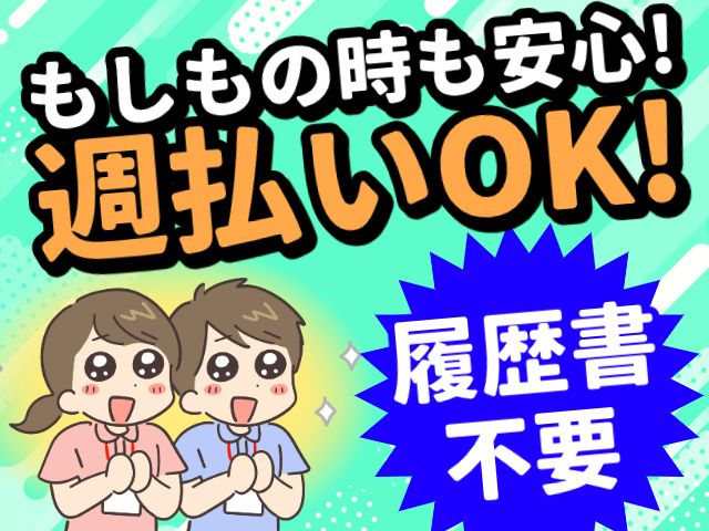 仕事内容 【新しくて綺麗な職場で働こう!】 「初任者研修」または「介護福祉士」の資格を活かせる! ブランクがある方もOK! 20代~50代の男女スタッフ活躍中! 【履歴書不要でラクラク応募!】 書類準備の手間がなく、 すぐにお仕事のご案内が可能です! 「ちょっと気になる」だけでもOK! お気軽にご応募ください! 【おすすめポイント】 ・完全週休2日制 ・週払いOK ・資格手当あり ・マイカー通勤OK 【介護スタッフ:お仕事内容】 ユニット型の特別養護老人ホームにて 介護業務をお任せします。 ~具体的には~ ・食事介助 ・入浴介助 ・排せつ介助 など… 【勤務地】 蔵王町の特別養護老人ホーム ・車通勤OK ・交通費支給 ※新しくて綺麗な施設! 気持ちよく働けます! 【収入アップ可能!】 介護福祉士資格を取得すれば 手当がつきます! 頑張りをしっかりと お給料で還元してくれる環境! 【年齢問わず在籍!】 20代・30代の若年層から 40代ミドル、50代中高年まで 幅広い世代が活躍中! 子育てと両立したい主婦(夫)さんや 安定して稼ぎたいフリーターさんなど 様々な方が働いています! <現場見学あり> 介護専門のアドバイザーが 現場の見学同行しますので 安心してご相談ください。 応募するかは見学してから決めてもOK! ※現在コロナウイルスの影響で 見学が出来ない場合もございます。 ご了承ください。