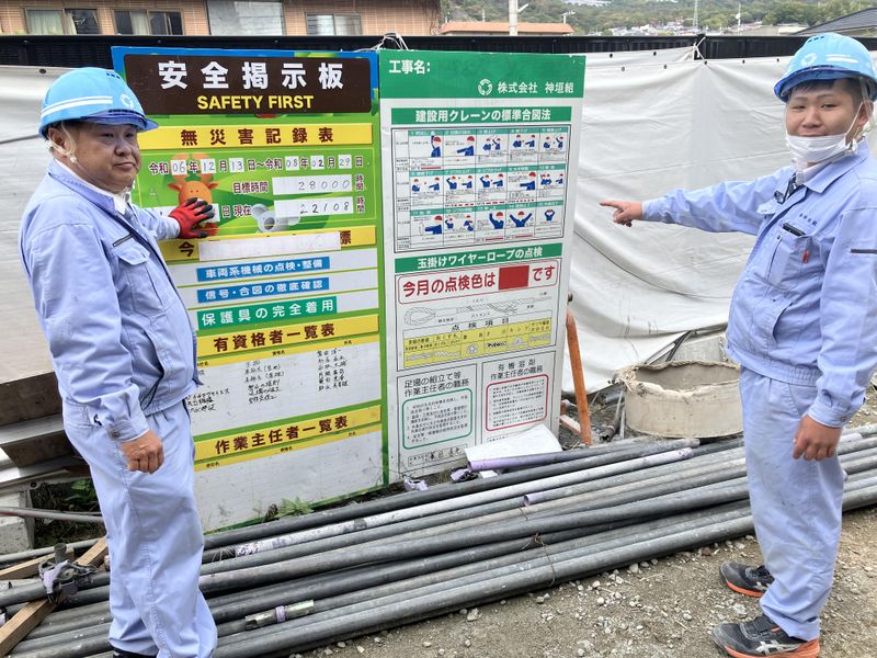 仕事内容 建築現場監督補助は、街づくりやインフラ整備といった、地域の暮らしを支える大切なプロジェクトに関わる仕事です。 自分の携わった建物が完成し、街に長く残り続ける姿を見たときには、大きな達成感と誇りを感じられます。 まずは現場監督のサポートとして、現場の流れや専門職の動き、建物ができ上がるプロセスを学びながら、少しずつ役割を広げていけるポジションです。 現場監督は施主・職人・設計士・官公庁など、多くの関係者と連携しながら仕事を進めます。 その補助として現場に入り、日々のコミュニケーションや調整業務を経験することで、視野が一気に広がり、建築の知識だけでなく人間力も大きく成長できます。 短期間でまるごと習得できる仕事ではありませんが、だからこそ経験を積むほどに実力が身につき、将来的には“現場を動かす側”へとキャリアアップできる環境です。 当社は毎年安定した受注を続けており、収入面・将来設計面でも安心して働けます。 計画通りの業績により、マイホームの建築・改修、車の購入、海外旅行など、あなたの夢の実現に向けた働き方が可能です。 「街にかたちを残す仕事をしたい」 「未経験から現場の仕事に挑戦したい」 そんな方を歓迎します。 【神垣組の特徴】 ◆神垣組は、創業以来「地域密着型の建設会社」として、呉市を中心に多くのお客様と信頼関係を築いてきました。 小さな現場から大規模工事まで、手掛ける仕事はさまざま。 地域の発展と人々の暮らしを支える誇りを胸に、社員一人ひとりが現場の最前線で活躍しています。 ◆現場で学び、資格を取り、自分の手で成長を掴む。 入社後は、まずは先輩のサポートからスタート。 未経験の方でも丁寧に教えていくため、建築の知識がなくても大丈夫です。 現場での経験を積みながら、建築士や施工管理技士などの資格取得を目指せます。 資格を取れば、担当できる仕事の幅も広がり、官公庁案件に携わるチャンスも。 「努力がしっかり給与に反映される」評価制度があるため、やりがいを持って長く働ける環境です。 ◆アットホームでとにかく人に優しい職場。 神垣組の特徴は、なんといっても“人の良さ”。 「少しのミスも責めることなく、次頑張ろう!」と声をかけ合う――そんな温かい社風が根付いています。 ノルマに追われることもなく、穏やかな空気の中で自分らしく働けます。 社員同士の距離も近く、年1回の社員旅行やカープ観戦、BBQ、ボウリング大会など、交流の機会も豊富です。 「働きやすい」「居心地がいい」と感じて長く続く社員が多いのも特徴です。 ◆働きやすさ×安定を両立。 ・年俸制(年2回の評価面談あり) ・業績に応じて臨時ボーナス支給(6年連続実績あり) ・感染症時は特別休暇を付与 ・出張なし/呉市中心の勤務/最寄駅から徒歩5分以内 地域に根ざした安定企業として、長く安心して働ける環境を整えています。 ◆採用担当者からのメッセージ 「未経験でも、建築の勉強をしていない方でも大歓迎です。 一人ひとりの成長スピードに合わせて丁寧に育てます。 “焦らず、じっくり”と技術を身につけたい方にぴったりの職場です。 まずはお気軽にお話ししてみませんか?」