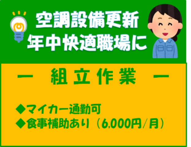 <西区>組立作業◆年間休日125日◆空調完備◆丁寧な指導あり◆無料駐車場あり◆食事補助あり