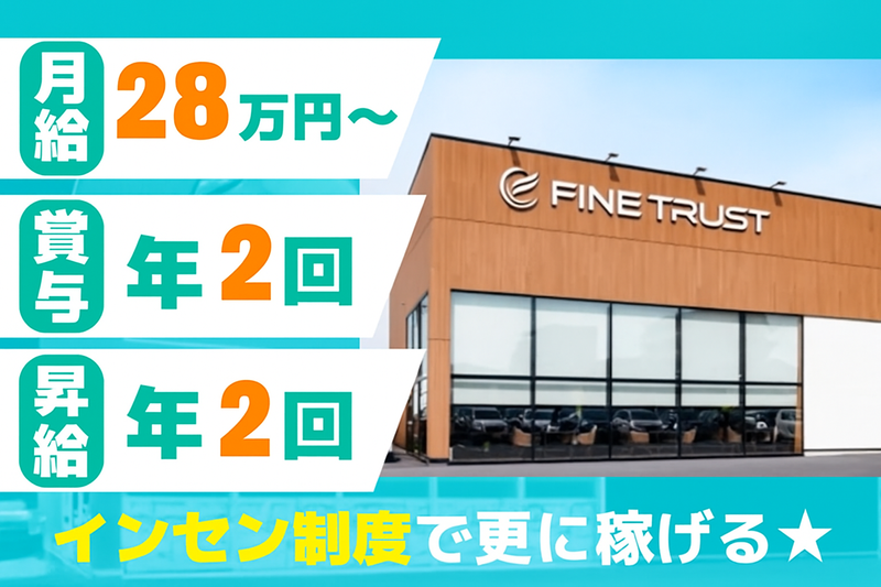 仕事内容 ⭐車の知識ゼロでもOK! 必要な技術や知識は 入社後に一から丁寧に教えます◎ ⭐若手が中心に活躍中! 20代・30代が多数在籍。 仲間と一緒に成長できる職場です! ⭐第二新卒や社会人デビューも応援 「やってみたい」 その気持ちがあれば大歓迎! ⭐働きやすさもバッチリ 土日休みも相談OK&残業ナシ! メリハリをもって働けます。 ⭐収入面も安心! 月給は28万円以上+賞与年2回 頑張った分はインセンティブに♪ <―――― 仕 事 内 容 ――――> お任せするのは、 中古車のキズやヘコミを直す 「鈑金(板金)」や「塗装」の仕事です。 ▼ 鈑金とは… ヘコんだ部分を内側からたたいて 整形する作業です。 ▼ 塗装とは… キズを目立たなくするための 色塗り作業です。 メーカー・車種を問わず さまざまな車種を扱います。 毎回違う“症状”に対応することで、 飽きることなくスキルアップ可能! 自分の手で車をよみがえらせる―― そんな達成感を味わえる、 モノづくり系のやりがいあるお仕事です。 ✅未経験も安心! 入社後は、先輩スタッフが マンツーマンでしっかりサポート! 道具の使い方や手順など 基礎から丁寧にお教えします。 困ったときもすぐ相談できるので、 安心してチャレンジできます。 <―――― 労 働 条 件 ――――> ✨無理なく働ける勤務スタイル ▶ 残業ほぼナシ!基本定時退社 ▶ 土日休みの相談もOK ▶ GW・盆・年末年始休暇あり ✨手厚い待遇・福利厚生 ▶ 昇給・賞与年2回・インセンティブ ▶ 交通費支給&資格取得サポート制度 ▶ 資格手当・皆勤手当・社員割引 ▶ マイカー通勤OK(無料駐車場あり) <―――― 職 場 環 境 ――――> 名鉄「味美駅」より徒歩10分の ファイントラストエアポート店では、 20代・30代の若手が中心に活躍中! 同年代が多いこともあり、 職場はいつも明るくにぎやかで、 困った時もすぐに相談しやすいです。 新しい技術や知識も 先輩がしっかりサポートしながら 教えてくれるので、焦らず着実に スキルを身につけていけます。 将来的には専門職として キャリアアップが可能です。 <―――― 先 輩 の 声 ――――> 転職して一番に感じたのは、 “気を張らずにいられる居心地の良さ”! 前職は残業が多かったのですが、 今は定時で帰れています。 メリハリがあることで仕事に集中でき、 やりがいも感じられています! 車の知識がまったくなかったので はじめこそ不安でしたが、 先輩たちが「ここはこうやるといいよ」 「何かあれば遠慮なく聞いてね」など こまめに声をかけてくれて、 不安なくスタートできましたね。