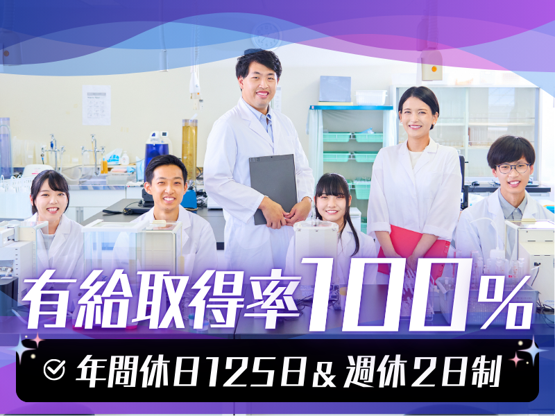 休日休暇 土日祝休み 完全週休二日制 (配属先により異なる場合があります。) ・年間休日125日 ・有給休暇(取得率100%) ・GW休暇 ・夏季休暇 ・年末年始休暇 ⭐休暇制度⭐ ・慶弔休暇 ・産前産後休暇制度(取得率100%!復職実績あり) ・育児休暇制度(取得率100%!復職実績あり) ・介護休暇制度 ・5日以上の連続休暇の取得も可能♪ ⭐復職しやすい環境です⭐ 研究職に就かれた後に、 出産や育児などのライフイベントからの 復職率は100%! 復職前には、当社の研修センターにて 復職に向けた準備もできます。 不安なくお仕事復帰ができますよ♪