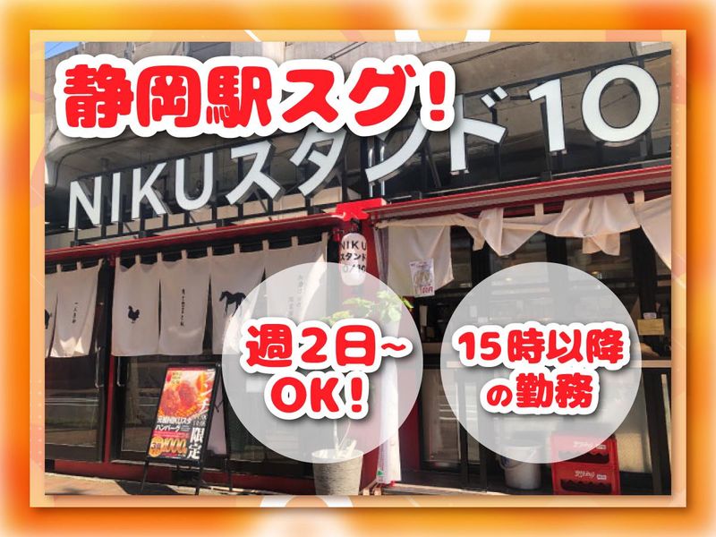 仕事内容 フルタイムで稼ぎたい! Wワークしたい! …そんなフリーターさん大歓迎♪ ✅肉好き必見!まかない無料 ✅週2日~、1日4時間~OK ✅ラストまでできる方歓迎! (深夜時給1438円でしっかり稼げます) ✅7~8時間のフルタイムもOK ✅Wワークも大歓迎 ✅髪型・髪色・ピアス・ネイル自由 創業60余年、歴史ある食肉卸のプロが プロデュースする肉料理ブランド! 『NIKU スタンド 10/10 (ニクスタンド ジュージュー)』 静岡駅スグで気軽に立ち寄れる カジュアルな炭焼き肉バル♪ 2024年10月にリニューアルしたばかりの キレイな店舗で一緒に働きませんか? 【お仕事内容】 *お客様のご案内 *オーダー取り *ドリンク作成 *商品提供 などホール接客業務全般をお願いします。 アルバイトデビューや接客未経験でも まずは笑顔であいさつできればOK◎ 席番号やどんなmenuがあるか、 おススメ商品はなにか、 少しずつ覚えていって できることからはじめていきましょう! \この求人のPOINT/ ⭐絶品まかないが無料です! 肉問屋直営ならではの こだわりのお肉を使った美味しい まかないが食べられます♪ ⭐シフトは融通ききます! <週2日×1日4時間~> あなたの都合に合わせて 勤務時間や曜日など相談OK◎ 「週5日フルタイムでガッツリ稼ぎたい」 「他の仕事と掛け持ちしたい」 「Wワークで生活費を稼ぎたい」 などいろいろな働き方ができます。 20代・30代のフリーターさん活躍中♪