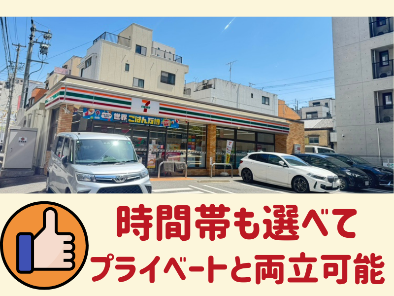 仕事内容 ~・。*+.おすすめポイント.+*。・~ ◇働き方はあなた次第!選べるシフト◎ ◇髪色・髪型・ピアスなどオシャレOK ◇日本人スタッフ活躍中 ◇コンビニ勤務の経験がある方大歓迎 ____________________________ <仕事内容> セブンイレブンで 販売・接客・レジ・商品陳列など をお任せします。 ◎まずは笑顔で「いらっしゃいませ」が 言えればOK!お仕事は難しくないので、 徐々に覚えていきましょう。 できることからお任せしていきます! 未経験の方やブランクのある方も 安心してください♪ \\勤務時間が選べます// - (1)6:00~9:00 (2)17:00~22:00 (3)22:00~翌6:00 - ◎週2日~OK! 平日のみもOK!土日のみもOK! ◎曜日や時間など相談OK! 無理なく働けるシフトを作ります。 ▶扶養内勤務OK! ▶テスト週間・サークル活動、考慮します ▶Wワーク・副業OK! ▶深夜帯しっかり稼ぎたい方、日中の空いた時間で働きたい方等幅広く大歓迎 ▶バイトデビューの方応援◎ 雇用形態 アルバイト・パート