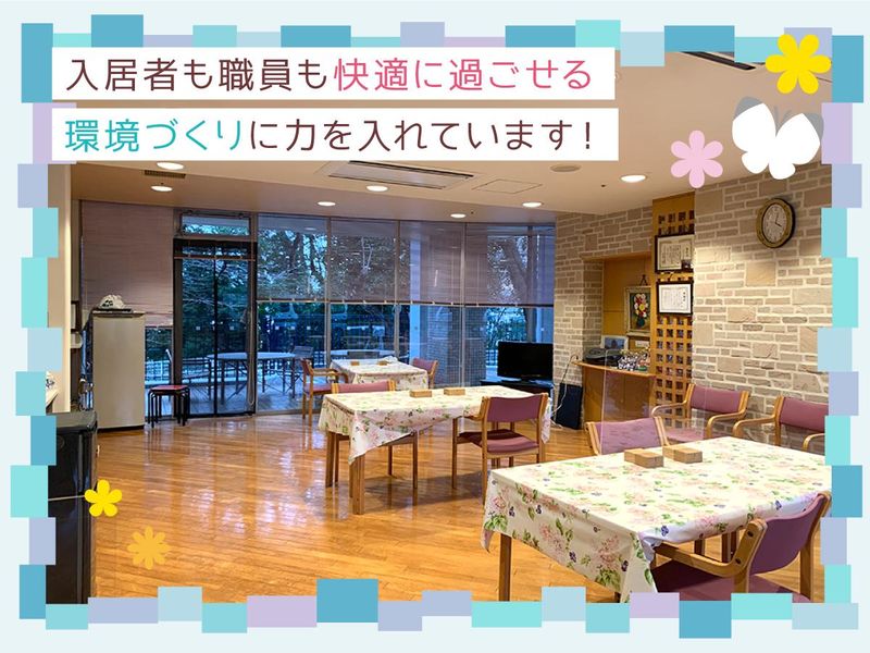 職場環境 <職場見学も歓迎> 地域との繋がりを大切にしている当施設。 地域貢献や社会連携にとても力を入れています。 施設内はBGMが流れており、 落ち着いた気分で働くことができます! 敷地内に猫ちゃんが遊びに来ることもあり、 日々の癒しにもなります♪
