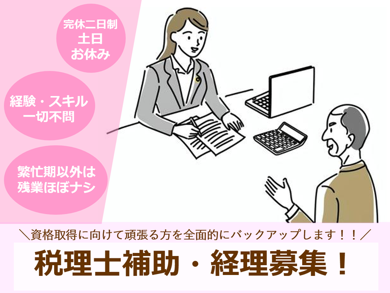 未経験歓迎!土日休/残業ほぼナシ 税理士を目指す方大歓迎♪