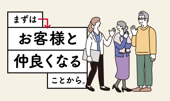 求めている人材 30代・40代 女性活躍中! あなたにとって もう一度、輝ける場所がここにあります✨ *未経験歓迎!(未経験が9割!) *経験不問! *PCスキル不問 *要普通免許 *業界、職種未経験の方歓迎 *子育てや介護でブランクがある方歓迎 【こんな方、歓迎】 *年齢的にも最後の転職としてチャレンジしてみたい方 *早く借金を返したい、子供の学費を稼ぎたいと考えている方 *高収入を目指したい方 *頑張り(実績)が正当に評価され収入に反映される会社で働きたい方 *初対面の人と打ち解けるのが得意な方 *お客様に向き合える仕事がしたい方 *宅建士の資格をお持ちの方 *宅建事務、不動産事務、建築事務など事務員としての経験がある方 *新規営業、ルート営業など営業職の経験がある方 一人のお客さまに寄り添い、何度もお会いして、交流し、少しずつ距離を縮めていきながら信頼を築いていくことが成果につながります。 つまり資格やスキルよりも、これまでの人生経験が、そのまま武器になるお仕事と言えます。 性別の条件と理由:女性歓迎(ポジティブアクション)