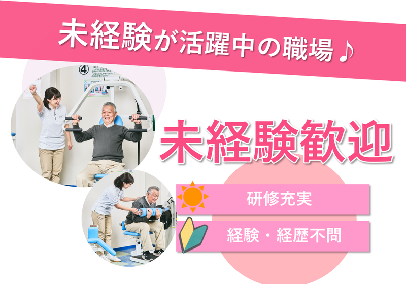 求めている人材 要普免(AT可) 未経験大歓迎 資格不問 (介護系有資格者には資格手当がつきます) リハビリ型フィットネスクラブのスタッフ募集です! 高齢者や病気で手や足にマヒが残った方のために専門的に開発されたマシンを使ったフィットネスを行っています。 人の役に立ち、本当に感謝され、社会にも貢献できる「やりがい」に溢れたお仕事です。 経験者は1ヵ月、未経験者は3ヵ月ほどで覚えられます!
