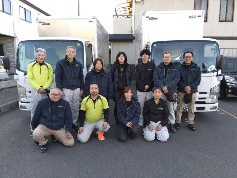 職場環境 20代・30代・40代・50代、 若手~中高年まで幅広い男性活躍中! 【従業員数】 18名 【車両保有台数】 ・2tロング箱×5台 ・2t平ロング×2台 ・キャラバン×1台 ・軽車両×2台