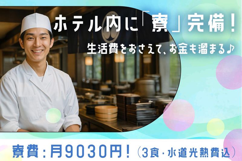 仕事内容 \生活コストを抑えて、夢に近づく/ 「住む・食べる・光熱費」 全部込みで月9,030円の寮完備! 北海道・定山渓で、 料理人としてのキャリアと 暮らしを両立させませんか? □■ 生活の不安減!仕事のモチベUP ■□ ✅食費・水道光熱費込みで 月9,030円の寮あり! ✅ホテル敷地内のため、 通勤時間・交通費もカット◎ ✅サウナ・温泉も無料で利用可能! 仕事終わりにじっくり身体を癒やせる – ✻ – ✻ – ✻ – ✻ – ✻ – ✻ – ✻ – ✻ – 北海道の大自然に囲まれて暮らす贅沢 – ✻ – ✻ – ✻ – ✻ – ✻ – ✻ – ✻ – ✻ – ⭐定山渓温泉や渓流、 滝、山岳エリアなど 観光地ならではの自然環境 ⭐寮周辺にはスキー場・ 登山道・釣りスポットも多数 ⭐オフには登山やサウナ、 自然散策などでリフレッシュ◎ 「田舎すぎないけど、自然が身近にある」 ちょうどいい環境で新生活が始められます! 【 お任せする仕事内容 】 ホテル内のレストランや宴会場にて、 洋食調理業務をお任せします。 *具体的には… □洋食バイキング・アラカルト・ 宴会料理の仕込み・調理・盛り付け □食材の管理、厨房内の衛生維持、 後片付けなどの厨房業務全般 □経験に応じて、調理長候補として マネジメントやメニュー開発にも関与 □大量調理・団体対応・ライブキッチンなど、 多様な調理スタイルに対応 ✨実力や意欲をしっかり評価する風土あり 年齢や社歴に関係なく、 キャリアアップのチャンスがあります。