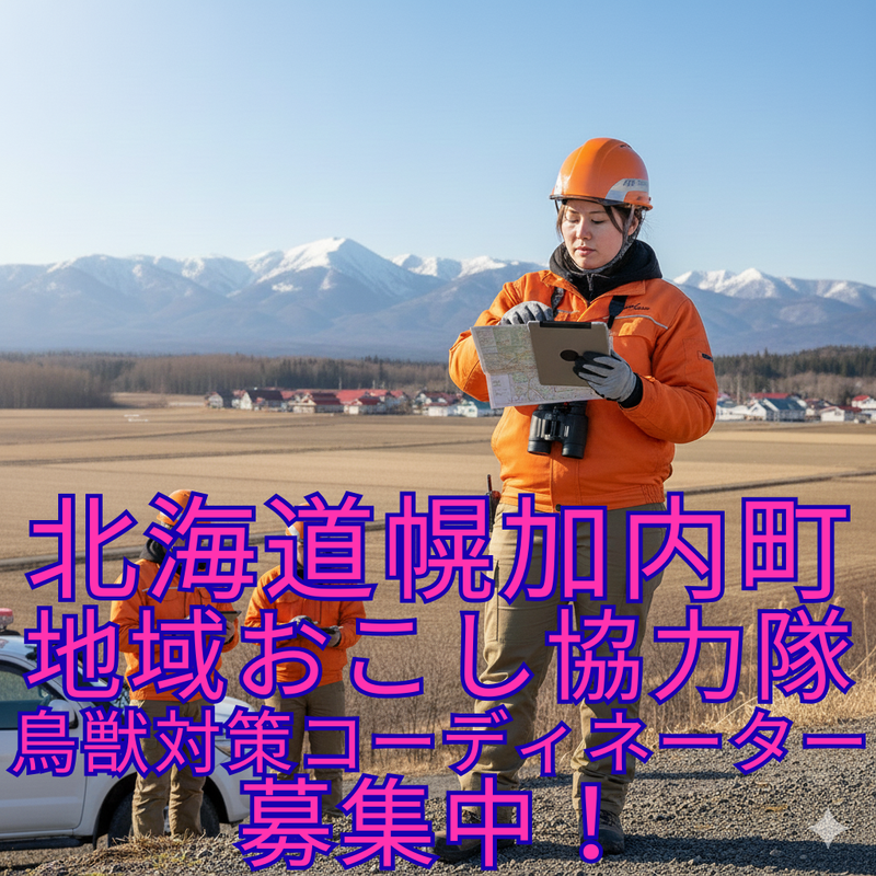 仕事内容 幌加内町で農地・暮らしを守る鳥獣対策を担うコーディネーターの仕事です。 家賃補助・移住費用支給あり|期末手当あり|地域おこし協力隊(最長3年) <ポイント> ✔ 家賃補助・移住費用支給あり|生活面の安心サポート ✔ 農地・暮らしを守る鳥獣対策業務(捕獲・見回り・対策企画) ✔ 農家や地域住民との連携を通じて地域に貢献する役割 ✔ 現場作業と計画提案の両方を担う実践的な仕事 ✔ これまでの経験を活かし、環境・一次産業分野に強みをつくる ✔ 期末手当あり・最長3年の地域おこし協力隊制度 来春以降の移住を検討している方、大歓迎! 「いきなり移住は不安」という方も、まずはご相談からOKです。 <業務内容> ・鳥獣被害対策の現地作業 (有害鳥獣の捕獲、町内農地、集落周辺の見回り、出没状況の現地確認・注意看板設置など) ・農家や地域住民とのヒアリング・情報共有 ・捕獲に関する補助業務 ・被害状況データの整理・可視化 ・鳥獣被害対策計画の検討・改善提案 ・農業者・町民向けワークショップの企画・運営 ・町内ハンター育成に係る運営支援 <この仕事の魅力> ・地域の農業・生活に直接役立つ実感がある ・自然環境・一次産業・地域課題を横断的に学べる ・現場+調整役の両方を担う、やりがいのある仕事 ・将来、地域づくり・環境・一次産業分野で活かせる経験 <こんな方におすすめです> ・屋外での作業やフィールドワークが好き ・地域の人と信頼関係を築く仕事がしたい ・農業・自然・環境問題に関心がある