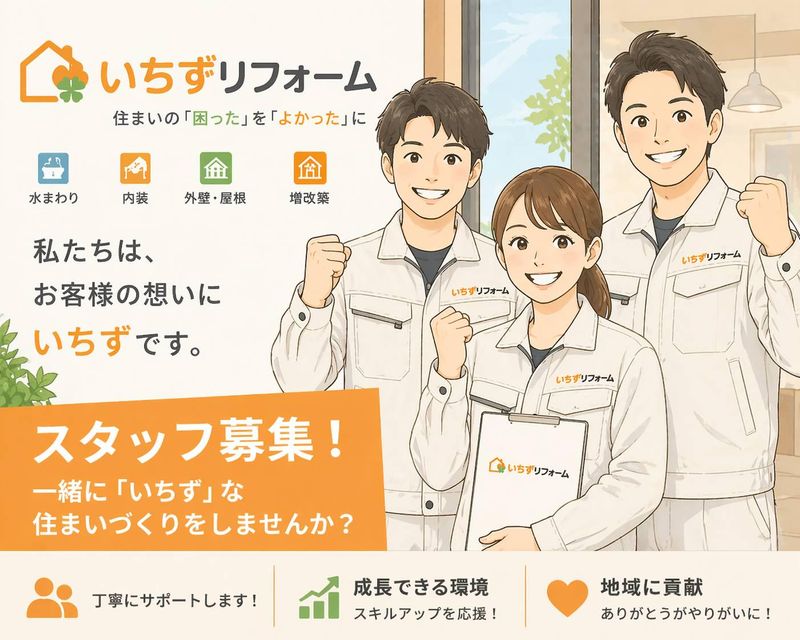 仕事内容 地域密着のリフォーム会社 いちずリフォームで事務スタッフを募集します。 パソコン業務が中心のため、 PC操作ができる方を必須条件としています。 ・Googleスプレッドシート(エクセルも可)入力 ・報告書作成 ・見積書/請求書の作成 ・補助金申請データ入力 ・LINE対応 ・ブログ更新 ・書類整理、データ管理 ・現場配送補助 ※電話対応なし ※営業業務なし