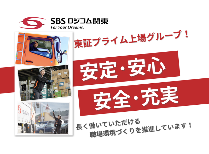仕事内容 平均スタート月収35.8万円!年休112日/大型免許・フォーク必須/手積み手降ろしなし・日帰り運行|10t車での軽量容器・原料・医療機器部品配送(県内・近県への近中距離配送)|高崎支店|正社員 下記サイトでは、現役ドライバーのリアルな声を公開中! 「SBSロジコム関東 ドライバー」で検索♪ https://job.sbs-logicom.co.jp/ その他、YouTube・TikTok・InstagramでもSBSロジコムの仕事や職場の雰囲気を発信しています! 是非ご覧ください! 【10t大型車で近距離ルート配送&中距離配送業務】 ★ここがポイント★ ・泊まりなしの日帰り運行! ・配送先は決まった卸先のみ! ・手積み手降ろしなし◎ <お仕事内容> 空のペットボトル・化粧品容器・プラスチック原料・医療機器部品を、 県内・近県へ配送するお仕事です! 乗務する車両は10t大型車でウィング車、荷台内ローラー車です。 近距離のルート配送&中距離配送(高速利用可)なので泊まり業務はありません。 毎日自宅へ帰れます◎ 配送先も決まった卸先のみ! 1日の運行数は1~5運行! 「中距離1運行」「中距離1運行+近距離1運行」「近距離3~5運行」 など様々で、メリハリをつけて働けます♪ (距離等により変動あり) 手積み手降ろしなし! ほとんどがフォークリフトを使用してのパレット積み降ろしなので、 身体への負担少なめ◎ 30代~50代、女性も幅広く活躍中! 同乗教育あり!充実の研修で安心して働けます♪ ご不明な点はお気軽にお問い合わせください◎ アピールポイント 年間休日増加!半日有給休暇制度導入! ・年間休日112日に改定! 2025年109日 → 2026年112日へ! ・休日数3日増+半日有給休暇制度も導入 福利厚生も充実しているので、安心して長く働けます 大型免許・フォーク必須×手積み手降ろしなし×日帰り運行 東証プライム上場グループで安心の正社員募集! 10t大型車で軽量容器・原料・医療機器部品を配送するお仕事です◎ ここが安心! ・配送先は県内・近県の決まった卸先のみ ・近距離ルート配送&中距離配送で、泊まり業務なし ・手積み手降ろしなし! フォークリフトでのパレット積み降ろし中心 ・1日1~5運行で、メリハリをつけて働けます 長く働ける制度も◎ ・安定した経営基盤のもと、教育体制・福利厚生が充実 ・賞与年2回+昇給あり/退職金制度あり ・家族手当・勤続祝金・子育て応援金など手当が充実 ・資格取得支援制度あり(運行管理・大型免許など)