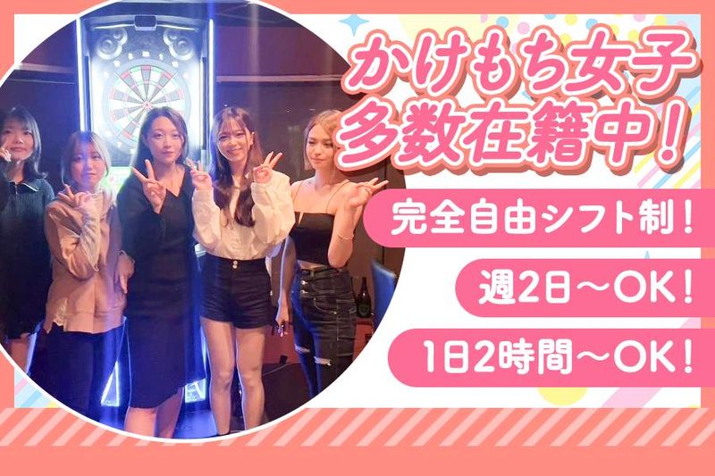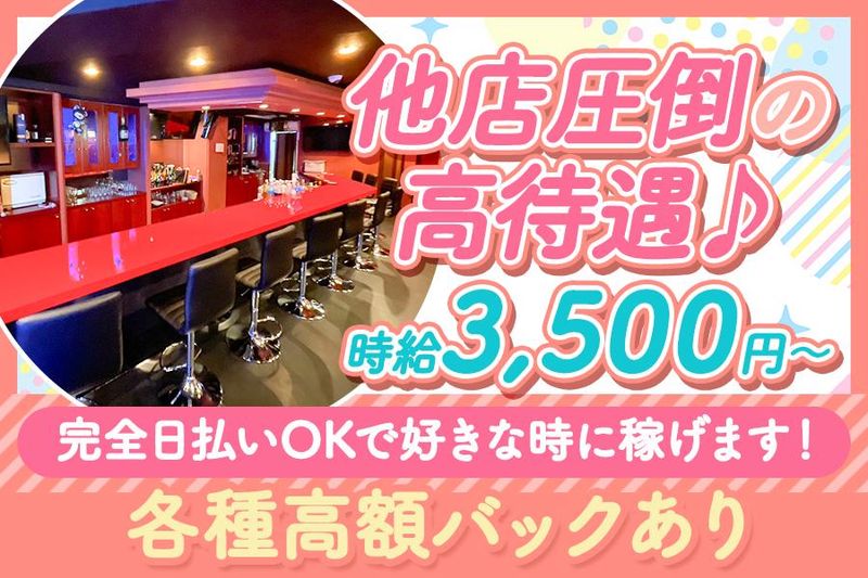 【保険制度】 雇用保険、労災保険、健康保険、厚生年金 待遇・福利厚生 【福利厚生】 ・時給保証有り ・各種高額バックあり ・全額日払い可 ・個人ロッカー有り ・完全自由シフト制 ・1日3時間~/週2日~勤務OK ・髪型・髪色自由 ・ネイル・アクセ自由 ・ノルマ・ペナルティ等一切無し ・即日体入や即日面接OK ・友達と同時応募や同時面接OK ・お酒が飲めなくてもOK ・ビラ配り等なし ・ド短期もOK ・送りあり(10キロ圏内500円、その他1,000円) ・コンセプトカフェ経験者歓迎 ・ガールズバー経験者優遇
