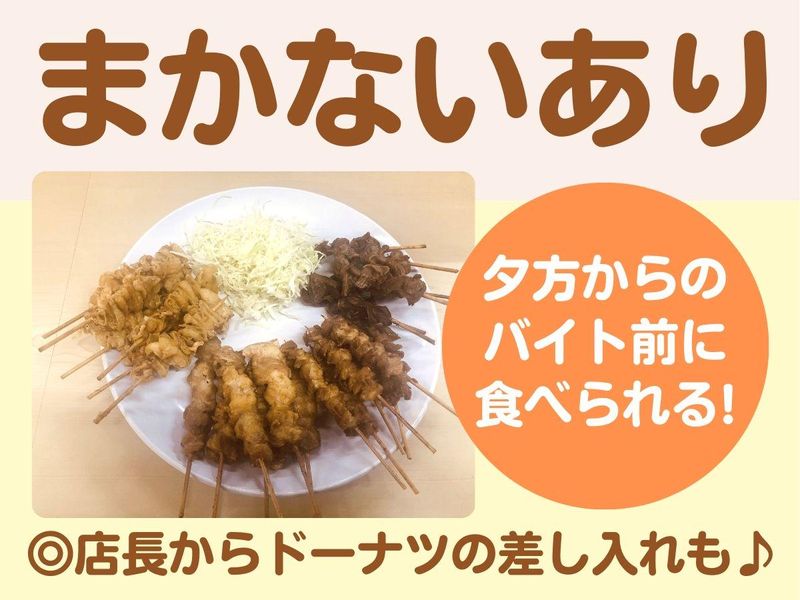 仕事内容 ・:*:・:*: ・:*:・:*: ・:*:・:*:・ ドーナツを差し入れしてくれる やさしい店長のお店です! 専門生、大学生が活躍中! ・:*:・:*: ・:*:・:*: ・:*:・:*:・ *週3日、1日3時間~勤務相談OK *店長が作ってくれる美味しいまかないが 無料で食べられる◎ *できることが増えたら昇給! *22時までだから遅くなりすぎない! *髪型・髪色自由!ピアスOK! <仕事内容> ・:*:・:*: ・:*:・:*: ・:*:・:*:・ アルバイトデビューさんも働きやすい ・:*:・:*: ・:*:・:*: ・:*:・:*:・ ホール、キッチン業務をお願いします。 ・お客様のご案内やオーダーの受け付け ・料理の調理補助 ・清掃や片付け など オーダー取りはハンディを使用! 定番メニューも多く、未経験でも すぐに覚えられると思います。 まずは笑顔で「いらっしゃいませ~」と あいさつができれば大丈夫! ホール業務のほかにキッチンもできる ようになるなど、できることが増えたら 昇給も可能です! お客様はファミリー層や大学生、 女の子たちなど様々です。 地元に帰ったら必ず来店してくれる 常連さんもいるなど地域の人々に 親しまれている店舗ですよ。 <職場環境> ・:*:・:*: ・:*:・:*: ・:*:・:*:・ 学生に人気!定着率抜群です ・:*:・:*: ・:*:・:*: ・:*:・:*:・ 現在勤務しているスタッフさんは 専門学生:2人(女性) 大学生:5人(男性4:女性1)です。 みんなまじめで楽しく勤務しています。 過去には専門学校卒業まで ずっと勤務してくれていた女の子もいるほど 定着率のいいお店です! ・:*:・:*: ・:*:・:*: ・:*:・:*:・ 店長ってどんな人?(スタッフ談) ・:*:・:*: ・:*:・:*: ・:*:・:*:・ 店長はお客様を大事にする人です。 作ってくれるまかないも美味しいし、 ドーナツを買ってきてくれるときも!(笑) シフトも融通利かせてくれるし優しいです。 <働き方> ・:*:・:*: ・:*:・:*: ・:*:・:*:・ 学業やサークルとも両立しやすい! ・:*:・:*: ・:*:・:*: ・:*:・:*:・ 平日・土曜/17:00~22:00 日・祝/16:00~21:00 週3日、1日3時間~の勤務だから 学校や、サークルが終わってからの 数時間の勤務にピッタリ◎ お店を閉めたらすぐに帰れるように 店長が気遣ってくれます。 遅くなりすぎないので安心です! - ◎店舗までは 名鉄「前後」駅から自転車で12分