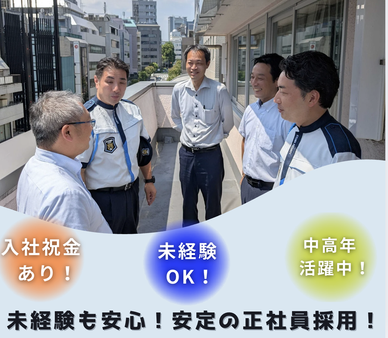 求めている人材 ✅ 必須:18歳以上(警備業法による) 特別なスキルや経験は一切不要です。 ※定年60歳/再雇用制度あり(65歳まで) ■学歴不問/ブランクOK ■40代・50代からの正社員デビュー応援 ■「真面目にコツコツ」ができる方なら 即戦力としてお迎えします ⭐ こんな方にピッタリの職場です ・「日給」や「派遣」の不安定さから卒業したい ・人間関係を一新してリスタートしたい ・家族に「日本橋で働いている」と誇りたい ・体力的に無理のない環境で定年まで働きたい ・ハローワークでお探しの方も大歓迎! 【8割以上が異業種からの転職】 飲食店店長、トラック運転手、ドライバー、 アパレル販売、営業職、自営業、介護など… 「警備は初めて」という方がほとんど。 法定研修(3日間)で基礎から教えるので 安心して飛び込んできてくださいね✅ 「家が近かったから」「正社員で働きたかったから」 そんなシンプルな志望動機も大歓迎です。 まずは一度ご応募ください! 【歓迎する資格・経験】※必須ではありません ■警備員指導教育責任者 ■施設警備業務検定 ■交通誘導警備業務検定 ■雑踏警備業務検定 ■機械警備業務管理者 ■自衛消防業務講習 ■防災センター要員 ■自衛消防技術認定 ■上級救命講習 など ▶ お持ちの資格に応じて入社祝い金をプラスします!(最大30万円) 40代後半から60代になっても長く活躍できるようキャリアパスをご用意しています。 現場で経験を積んだ後は、 【班長】→【副隊長】→【隊長】へと 着実なステップアップが可能です。 さらに希望に応じて、 ■施設全体の管理者 ■本社の人事・育成・企画職 など キャリアチェンジのチャンスもあります!