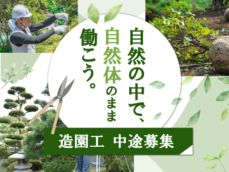 仕事内容 \春夏秋冬、街の表情を豊かに!/ =================== <この求人のポイント> ■応募者は全員面接! ■未経験の方も月給25万円以上+手当! ■公共工事が多く仕事量安定 <お仕事詳細> ●樹木の植栽 ●建築物の屋上の緑化業務 ●植生を復元する造園業務 ●大木の伐採、枝おろし …など 現場:さいたま市、都内 (板橋・中野区中心、他多数) ※班ごとに作業を行います。 現場により担当エリアを入れ替えたり 2班で向かう場合もあります。 ★直行直帰OK! 公園や公共施設を中心に、 マンション・個人宅などのお庭のお手入れ 剪定・造園作業を行います。 夏は草刈り、冬は剪定作業が中心です。 造園や土木作業の経験がない方でも イチからしっかり教えるので 安心してください。 未経験の方は、現場の掃除など 簡単な作業から始めましょう! =================== 【埼玉県×未経験歓迎×正社員募集】 公共工事が多いため 年間を通して仕事量は安定! >> 女性も多数活躍中! << =================== さいたま市や東京都(板橋区・中野区中心) で、造園・緑化業務、草木のお手入れ を行う当社。公共施設や管理会社からの 案件を多数いただいており、会社の経営は 非常に安定しています! 今回は事業拡大のための増員募集! 作業は複数人体制なので、未経験でも 安心して始められますよ! 人々が生活をする上で、自然や緑は 欠かせないもの。 埼玉で安定して働ける仕事をお探しの方は ぜひお気軽にご応募ください! 【代表のビジョン】 今後、農業やキャンプなどの 自然に関連した新しいビジネスも 展開させていきたいと考えています。 それを実現させるためには、 営業や管理を含めて、 この造園事業を任せられる存在が 必要です。 そのため、意欲や適性がある方に、 責任あるポジションを どんどん任せていきます! 向上心を持ってチャレンジしてくれる方 であれば、経験者も未経験者も大歓迎。 ぜひ小宮造園を引っ張っていく存在に なってください! ご応募お待ちしています!