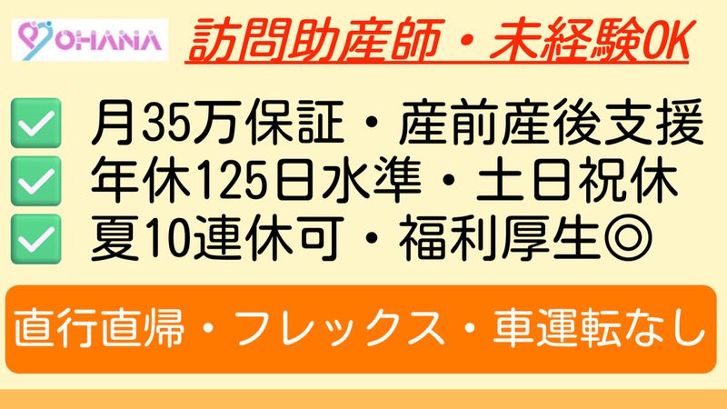 企業のセールスポイント 【代表者紹介】 渡辺 奈津子Natsuko Watanabe 埼玉県出身。 看護学生の頃より、小児看護、終末期看護、スピリチュアルペインに興味をもつ。 看護学校卒業後、横浜市内の大学病院でNICU、小児科、救急での勤務経験。16年間臨床で働く中で母子サービスの情報量の少なさや受け入れ先がない事に危機感をもつ。 病院退職後、産前産後ケアを行う一般社団法人PUMEHANA設立後、母子サービスへの幅を広げるため合同会社OHANA設立。 訪問看護ステーション『OHANAトータルケアサポート』を立ち上げる。 ー 【スタッフ本音アンケート(匿名で集めてみました!)】 Q:前は、どんな仕事をされてきましたか? ・精神科の看護師長でした。 ・総合病院の看護師、大学病院の助産師をしてました。 ・保育士、児童支援員です。 ・金融業でした。 ・保育園管理栄養士8年です。 ・小児専門病院ICU、総合病院の循環器科病棟とNICUでの看護師です。 Q:どこから会社に通ってますか? ・大和市です。 ・横浜市保土ヶ谷区からです。 ・横浜市南区から。 ・相模原市です。 ・綾瀬市です。 Q:入社の「決め手」は? ・社長からお声かけしてもらった ・子どもがいるので、「短時間から勤務OK」「直行直帰可」などワークライフバランスを取りつつ、資格を活かして働きやすいと感じました ・子ども関係の仕事でも今までやったことのない分野で興味があったため。 ・以前から代表の渡辺さんからお話しをきいて素敵なお仕事だと思っていました。私は患者さんと接する事はありませんがこの仕事に携われるところに魅力を感じました。 ・奈津子さんの4年かけてのオファーに負けました笑 ・小児訪問看護をみることができるから Q:入社後に安心できたフォロー(先輩、研修など)は? ・初めての訪問宅や処置は同行してくれます。 ・日々分からなかったことはSlackですぐに確認出来ます ・上司の方はじめ、皆さん優しく色々と教えてくださったので安心できた。 ・わからないところや時間的に間に合わない場合にフォローしてくださいます。 ・管理栄養士ですが臨床経験はない中、丁寧に教えてくださる方に恵まれているので日々学びの連続です。 ・初めて経験する処置などは複数人訪問で確認しながら実施することは安心感を得られた Q:仕事で「大変だったな~」と感じたことは? ・特にないです。 ・移動が多いことです。 ・子どもを連れて散歩や公園遊びに行くので夏冬場の外で過ごす時間は大変さを感じます。 ・医療についての知識が少ないので、勉強が必要だと感じた。 ・はじめて行く建物の場所探し。 ・チームワークを常に高いパフォーマンスで保つということ。 ・人間が人間と関わりあう中で、サービスも物をあるものではなく、無形価値をいかに共有し合い仕事ができるか。 ・指示待ちではなく、自ら判断し動くことは魅力ある仕事だと思います。チームワークの仕事なのでどこか歯車狂うとあっという間に崩壊するので事業運営として大変だなぁと思う反面やる気には満ち溢れます ・本人、家族への対応などを個人の判断で進めていくこと Q:スタッフ同士の雰囲気は? ・皆さん話しやすい ・何かあればSlackを使用しすぐに連絡が取れます。事務所にいる際は笑いながら気軽に話せます。 ・皆さんとても仲の良い。 ・わからないところはききやすく話やすい。 ・話しかけやすい方が多いです! ・不機嫌オーラ醸し出すお局もいないので、みなフラットな関わりが好きです! ・患者さんの情報共有などはすぐにできる Q:社長の渡辺さんは、どんな人ですか? ・とても優秀な人 ・行動力、即決力、決断力のある方 ・なんでもテキパキこなしリーダーシップがあり、大人だけでなく子どもの心を掴むのが上手な方。また、裏表のないハッキリした方。 ・判断も行動もはやい。 ・見守ってくれる人。 ・しっかりした人 Q:職場の良い所は? ・穏やかで話しやすい ・訪問に出てることが多いですが、事務所で会えると様々な会話が弾みます。福利厚生は婚活支援やエステ等他の会社にはない支援があります ・皆さんハキハキしていて、優しい。 ・休みや勤務時間の希望がとおる。 ・こうしてみては?の意見が言いやすい。そして、いつも前向きに聞き入れてくれる ・社員同士の距離感 Q:今の職場を辞めず、働き続けている理由は? ・支援対象がニッチであることもあり経験のない対象者と関わることも多いですが、その分勉強出来ることも多いと感じます。 ・やりがいがある、スキルが磨ける。 ・素敵だと思っていた仕事に携われたから。 ・勤務日や時間の希望がとおるから。 ・重心小児はどこもやってますが、母子支援に特化しているということを横浜にあるどの事業者よりも認知させたいので、横浜で産後うつ、児童精神といえばOhana!って 言われるくらいに事業拡大するまでは頑張ります ・様々な対象への看護を経験できる Q:OHANAの求人を見て、「応募しようか悩んでる人」に、ひとことメッセージをお願いします! ・在宅を知ることで