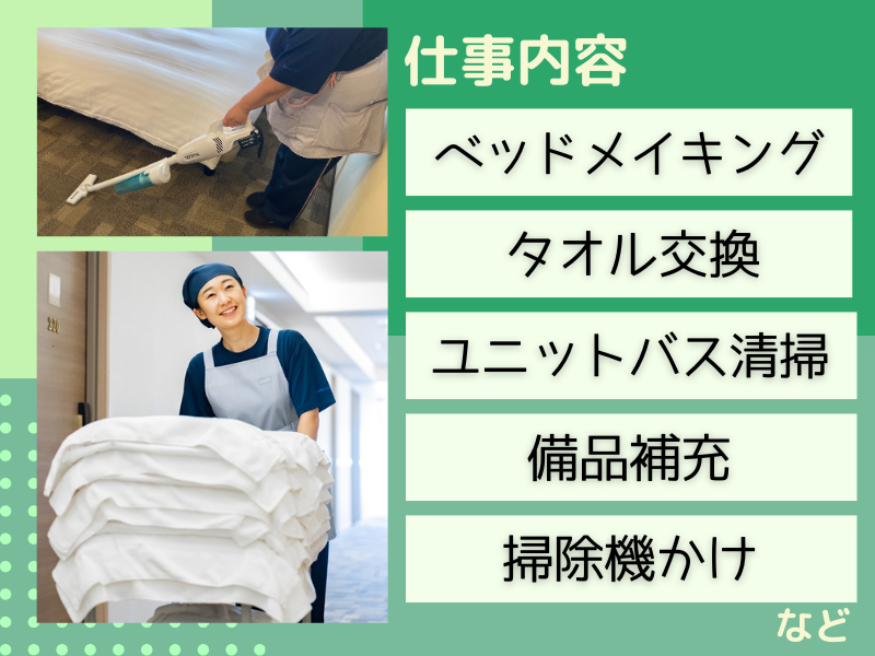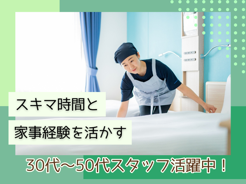 求める人材: 未経験者大歓迎! 30代・40代・50代まで活躍中 主婦(夫)さん、学生さん、 副業・Wワーク(規定有)、 フリーターさんも歓迎です! 外国籍の方も活躍中! 扶養内勤務もOK!ご相談ください。 久しぶりの社会復帰でブランクがある方、 家庭と両立して働ける職場を探していた方、 ハローワークで求職中の方にもピッタリです。 ホテル清掃、ビル清掃、ベッドメイク、 家庭でのお掃除、軽作業、などの経験も もちろん活かせます。
