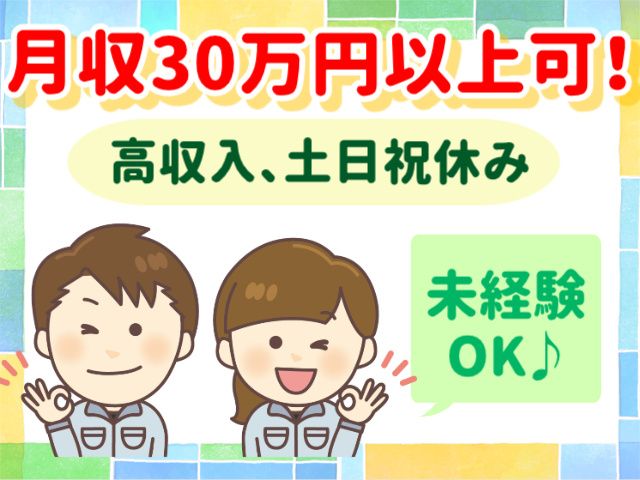 <月収30万円以上可!> 土日休み!未経験でも高収入! 2週間ほどで覚えられる製造補助!