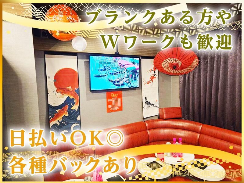 仕事内容 =\ 2025年3月 Grand Open☆ /== 「テンション高めの接客は疲れる…」 「久々に夜のお仕事がしたい♪」 そんな経験者・ブランクある方は歓迎◎ もちろん、スナックデビューもOK!! とっても簡単なお仕事ですよ♪ ✨ ママのお手伝い ✨ お客様に簡単なお酒を作ったり、 楽しくお話するだけのお仕事♪ 最初は笑顔であいさつできればOK◎ 仕事の手順は丁寧に教えます! 困った時のフォロー体制も万全♪ ――☆働きやすい自由シフト!! 週1日・3h~勤務OK◎ シフト提出はメールやLINEでラクラクです♪ お昼の仕事との掛け持ちや プライベートと両立しながら、 夜の空き時間で効率よく働けます! OLさんのWワークにも◎ 終電上がり、送り利用も可能! 働き方の相談はお気軽にどうぞ☆彡 ――☆短時間でも稼げます! 未経験の方も時給2500円以上でスタート。 各種バックもあり、頑張り次第で 短時間でもしっかり稼げます♪ お給料は日払いOK◎ 頑張ったその日にもらえるので、 急な出費があった時にも安心ですよ★ ⇒皆様のご応募をお待ちしています!! ✨ ✨ ✨ ✨ ✨ \\ 体験入店も受付中! // <体験1時間あたり時給2500円~!> 「初めての自分にもできるかな…?」 「お店の雰囲気が気になる!!」 ⇒そんなアナタはぜひ体験入店へ!! 体験は何時間でもOK! 働いた時間×時給2500円を 日払い対応します♪ しっかりサポートするので、 スナック初体験の方もお気軽にどうぞ! ※店舗の状況により体験が できない場合があります。 予めご了承ください。 ✨ ✨ ✨ ✨ ✨ ▼同時募集  ̄ ̄ ̄ ̄ ̄ ̄ ̄ ✅ エスコート/時給1200円~ ⇒お客様のご案内 ホール業務のサポートをお願いします。 接客は一切ありません。 ✅ ドライバー/日給6000円(実働2.5h・応相談) ⇒キャストの女性たちの 送り業務をお任せします。 詳細はお問い合わせください!
