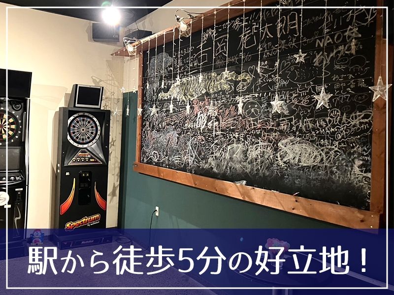 仕事内容 ◎カウンター越しにお客様とおしゃべりしながら、個別の接客よりは店舗全体で働くイメージです! ダーツ・カラオケがあるので楽しみながら働けます! ◎お客様のご案内 ◎オーダーの受付 ◎ダーツマシンの基本操作案内 ◎レジ会計・店内清掃 最初は経験がなくても丁寧な研修やサポートがありますのでご安心ください。 スタッフのほとんどが未経験からのスタートです! 連絡先交換の強要はありません! \体験入社も受付中/ まずは1日体験からどうぞ! お店の雰囲気や仕事内容が合うか試してみてください! 体験してみて気に入ったら入店でOKです! 無理に入店を迫ったりしないので、気軽にお試しください!