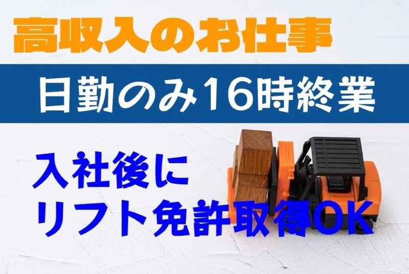 【アピールポイント】 日勤のみの工場内作業(リフト資格ある方優遇) ✅16時終業で私生活充実 ✅リフト免許は入社後に取得OK ✅充実の各種手当 (皆勤・通勤・品質・無事故・能力手当)