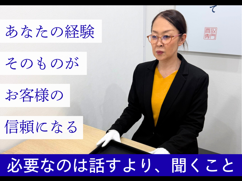 仕事内容 接客・サービス経験で培った 「聞く耳」が大きな武器に! セカンドキャリア、はじめませんか? ┈┈┈┈┈┈┈┈┈┈┈┈┈┈┈┈┈ 飲食、販売、サービス業の最前線で走り続けてきた方へ。 その接客スキルを、次は誰かの想いに寄り添うために使いませんか。 私たちが運営する買取店『買取大吉』は、美容師歴32年のスタッフが「長く働き続けたい」と自ら提案し立ち上げた事業です。 ここは、椅子に座り、落ち着いてお客様の人生に耳を傾ける場所。あなたのキャリアのアップデート、ここから始めましょう。 【この仕事のポイント】 ――――――――――― ✅「座り仕事」への転換 1日中立ちっぱなしの現場を離れ、椅子に座って対面接客に集中! ✅知識は「後付け」でOK 買取査定は専門システムと本部にお任せするので、未経験でも問題なし! ✅「聞く」が成果に 売り込むのではなく、品物の「思い出」を聞くことが信頼の鍵に! ✅安定の経営母体 創業30年、サービス業で地域に根差してきた法人が運営する安心感! 【具体的な業務の流れ】 ―――――――――――― ご来店いただいたお客様への受付・接客を担当します。 ▼お出迎え・自己紹介 まずは名刺をお渡しし、安心感を持っていただくところから。 ▼お客様へのヒアリング 「いつ頃買ったものか」「どんな思い出があるか」を丁寧にお伺いします。 ▼査定依頼 品物の写真をスマホで撮影し、本部に送信。約10分で回答が届きます。 ▼金額提示・交渉 本部からの提示額をもとに、お客様と相談。ご納得いただければ買取成立です。 【未経験でも安心の教育体制】 ―――――――――――――― 「ブランド品や貴金属のことは詳しくない」という方も安心のサポート体制があります。 ●本部研修(Zoom等) フランチャイズ本部によるオンライン研修を受け、基礎から学べます。 ●10項目のマニュアル 業務の進め方が1から10まで整理されたマニュアルがあり、迷うことはありません。 ●業務内でのサポート 分からないことがあれば、その場で先輩スタッフがフォロー。スマホで本部と連携するシステムがあるため、一人で判断を迫られることもありません。 【買取の仕事の醍醐味】 ――――――――――― ✅やりがい 「あなただから売るわ」と言っていただける瞬間はやりがいになります。査定額も大切ですが、最終的にはスタッフへの信頼が成否を分けます。 地域の方々と深い関係性を築けるのがこの仕事の醍醐味。成果は店舗全体のインセンティブとして還元されるため、チームで喜びを分かち合えます。 ✅難しいところ お客様の希望額と、市場の適正価格に差がある場合の説明は難しいです。 特に金相場などのニュースを見て期待されている方に対し、手数料や精錬の仕組みを納得感のある形で伝える必要があります。 感情に寄り添いながらも、事実を誠実に伝えるバランス感覚が求められますが、実践で磨いていけば大丈夫です。 【当社について】 ―――――――― 私たちクリエイティブは1999年に設立。長年にわたり美容室を経営し、お客様とスタッフの人生と向き合ってきました。 この買取事業も、実は「体力的な不安なく、培った接客スキルを一生活かせる場所を作りたい」というスタッフのアイデアからスタートしています。 スタッフたちはお互いの接客をフォローし合ったり、複雑な品物は協力して確認したりと、常にチームで動いており、助け合う風土が根付いています。 【事業責任者/佐藤より】 ―――――――――――― 長年、サービス業の最前線に立ってきましたが、年齢を重ねるごとに将来の働き方について考えるようになりました。 接客は続けたい、でももっと腰を据えて働ける場所はないか。そんな時にこの事業と出会い「チャレンジしてみたい」と代表に伝えたのです。 最初は査定なんてできるか不安でしたが、実は大切なのは『耳』でした。お客様が品物を手放す経緯をじっくり聞くと、『この人に任せたい』と仰っていただけるんです。 今は体力的な負担も減り、接客そのものを以前より楽しんでいます。現在開設8ヶ月ですが、リピーターの方が増えていくのが、1番の楽しみです。