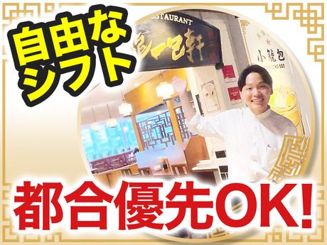 仕事内容 夕方~ディナータイムで働く接客のお仕事! \学校・遊び・バイト!全部応援します/ 授業・ゼミ・サークル・部活・就活などの 学校行事から遊びまで、忙しい学生さんも 放課後や空きコマなどスキマ時間でOK! 稼ぎたい方には、最大限稼げるシフトを提案! \この求人のメリットをご紹介/ ●イチから教えるので未経験でも安心 ●稼ぎたい月収に合わせてシフト調整 ●年齢不問!幅広い年齢層が在籍中 \シフトの融通ききます/ ●扶養内勤務・ダブルワーク歓迎 ●遅出や早上がり・曜日指定も応相談 ●連休や春休み・GWも入れる方は積極採用中 ●望まない連勤は基本的に組みません \まかないをお楽しみに/ ●まかないは無料だから食費も節約できる ●短時間の勤務でも食べられる お仕事の詳細 (具体的には) ○ご案内・オーダーテイク ○料理・ドリンクの配膳 ○お会計・レジ ○バッシング(食器を下げるなど) ○テーブルセット(案内できる状態にする) ○洗い物・清掃など ブランド紹介 \雲龍一包軒について/ 五色五味のカラフルな小籠包が大人気。 みんなが大好きな定番中華を 気軽に楽しめるレストラン。 おひとり様はもちろん、 カップル・お子様連れのファミリーまで、 幅広い層にファンを獲得しています。 働いて良かったと思えるような経験や 働く楽しさを提供できるような お店づくりを心掛けています! 働くお店の雰囲気 雰囲気重視の方にオススメの 働きやすい職場です♪ ギスギス感も、干渉し過ぎることも無く スタッフ同士ちょうどいい 距離感で働いています! 優しいスタッフが多いのも特徴の1つ! 「失敗したら怒鳴られたりしないかな」 なんて心配はご無用◎ 不安な方も安心して始められます♪ まずはご応募下さい 「通学途中で働きたい」 「大学以外の友達をつくりたい」 「まかない目当て」など 志望動機は何でもOK! 面接では 「テスト期間は休みたい」 「サークルの固定日がある」 「イベント・旅行前に稼ぎたい」など 遠慮なく相談して下さい!