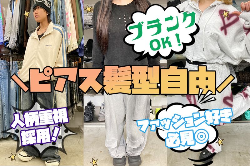 【レギュラー勤務のみ募集★☆】フリーター・社員デビュー大歓迎♪LINEでも面接調整OK!トレンドの韓国ストリートを中心としたユニセックスのお店です♪長く安定して働きたい方にピッタリ◎