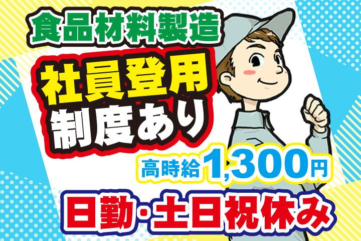 仕事内容 急募!人気の食品材料製造スタッフ! 日勤・土日祝休みでプライベート充実! 空調完備のクリーンルーム内作業! 未経験OK!20代~30代までの男性活躍中! 社員登用制度あり!直接雇用のチャンスです 業績安定、食品製造業界で働きませんか! (食品材料の製造のオススメポイント) 〇月収21万円可!フルタイムで収入安定 〇土日祝休み!週末休みで予定も立てやすい 〇日勤!16:30定時で残業なし 〇20代・30代までの男性活躍中 〇未経験OK!サポート体制万全 〇ブランクOK!弊社スタッフも活躍中 〇職場見学可能! (食品材料の製造のお仕事内容) 食品製造工場での工場内作業です。 空調完備のクリーンルーム内作業のため 清潔で働きやすさバツグン。 (こんな経験をお持ちの方が活躍中) 〇食品製造スタッフ 正社員 〇製造スタッフ 派遣社員 〇工場内作業 パート・アルバイト 食品工場内での製造スキルや 製造工場での経験を活かせます! ブランクある方もOK! (アドサポートの安心の職場見学) 弊社では面接後の職場見学を通して、 ・実際にどんな仕事をするのか? ・職場の雰囲気はどうなのか? ・通勤時間はどの位なのか? ご納得いただいてからの就業となります。 安心してご応募ください。 (ご不明な点はお気軽にお問い合わせください) お電話でのご応募・ご質問も受付中! 株式会社アドサポート TEL 0120-42-7077(採用担当まで)