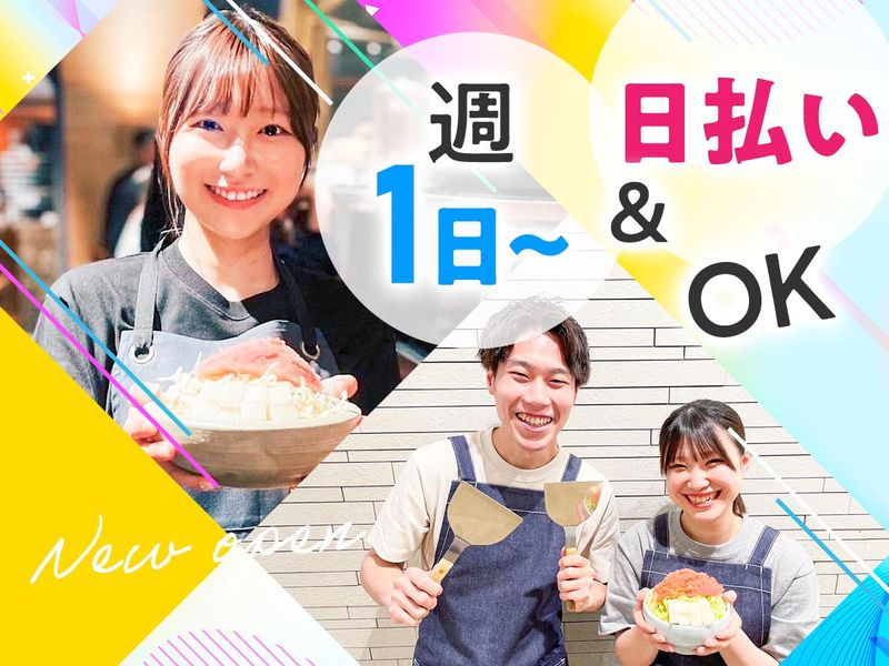 仕事内容 ★━━━━━━━━━━━━…‥・ 2025年10月New OPEN! オープニングスタッフ追加大募集 ・‥…━━━━━━━━━━━━★ 東京で行列をつくる もんじゃ焼きの人気店”おこげ”!!+. 周りは全員同期\^o^/ 「馴染めるか不安…」 なんて心配は必要なし◎ みんなでワイワイもんじゃ作りしながら 思いっきり楽しんでお仕事してください♪ 【この求人のPOINT】 ・2026年1月末まで時給1450円~! ・フリーター&主婦(夫)は時給50円UP ・髪色自由!ピアス/髭/ネイルOK! ・週2/4h~◎シフトの融通◎ ・急な出費も安心♪日払いOK! ・賄い実質無料!!ほぼ全メニューの試食も◎ ・履歴書不要!面接へGO!! 東京の食文化”もんじゃ焼き”を 一緒に広めてもらえませんか?+. ˚✧₊⁎ ⁎⁺˳✧˚✧₊⁎ ⁎⁺˳✧˚✧₊⁎ ⁎⁺˳✧ 【 仕事内容 】 まずはお店のルールや メニューを覚えることからスタート!! ◆具体的には… ・もんじゃ焼きの調理&実演 ・ドリンクやお料理のご提供 ・テーブル周りのお片付けや洗い物 ・お店のカンタンな清掃 など 「わぁ!すごい!」「美味しい!」 と、お客様の声がやる気に直結◎ ただの調理バイトじゃ味わえない、 ライブ感ある仕事です! もちろん、 最初は先輩がしっかりフォローします◎ 鉄板の扱い方や焼き方も、 コツさえ覚えればあっという間にプロ気分♪ ▼ ▼ ▼ ▼ 当店で働く特典 ▲ ▲ ▲ ▲ ⭐メニューのほとんどが試食OK! スタッフだけの特権!実質0円で満腹◎ 美味しさを知ってこそ、 お客様にも伝えられるってもんじゃ♪笑 ⭐【日払い or 月払い】選べます! 「今月ピンチ…!」そんな時も大丈夫。 ⇒日払いなら“働いた分の50%”を 最短で【翌日振込み】できちゃう◎◎ ⭐賢く稼げる!頑張りは反映◎ 大型連休中は時給大幅UP?! フリーター&主婦(夫)は時給50円UP! 残業代は【1分単位】でしっかり支給! ⭐自分らしさ全開で働くっ? 過度でなければ髪色自由! ネイル・ピアス・髭 ⇒ 全部OK!※規定あり おしゃれだって、バイトの楽しさの一部◎