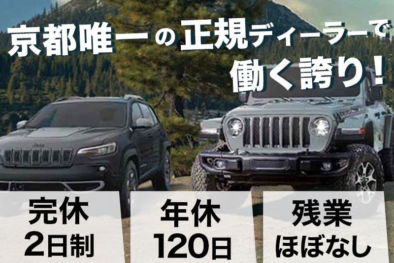 仕事内容 ◆この求人の魅力 売るのは、“車”ではなく“生き方”。 Jeepのある毎日は、日常にワクワクを与え、人生をもっと自由にしてくれる。 そんな価値ある時間を、お客様に提案するのがあなたの仕事です。 これまでに培ってきた提案力や信頼構築力を活かして、 “モノ”を超えた体験やライフスタイルそのものを届ける。 ただ売るのではなく、お客様の想いや未来に寄り添いながら、 一緒に「理想のカーライフ」を描いていく。 数字と信頼、どちらも大切にできるフィールドが、ここにはあります。 \POINT/ ・京都で唯一のJeep正規ディーラー! ブランドの魅力を直接届けられる ・業界未経験OK! 証券・保険・ブライダルなど異業種出身が多数活躍中 ・完全週休2日制&年間休日120日以上&夏季・年末年始など長期休暇あり ・残業ほぼナシ。仕事だけの一日でなく、自分時間もしっかり確保できる ・テレアポ・飛込みナシ! 完全反響型営業でお客様にじっくり向き合える ◆仕事内容 ジープ京都ショールームにて、Jeepの魅力とそのライフスタイルを提案します。 スペックの説明ではなく、“この車でどんな週末を過ごせるか”を描くような接客が特徴です。 ~具体的には~ ・ショールームでの来店対応、ヒアリング ・ライフスタイルに合わせた車種提案 ・試乗案内やご契約対応 ・納車対応・アフターフォロー ・顧客管理や紹介対応(飛び込み・テレアポなし) ◆こんな方にピッタリの仕事です ・「売ること」よりも、お客様との信頼関係をじっくり築きたい方 ・ブランドやコンセプトを理解し、自分の言葉で魅力を伝えたい方 ・Jeepの世界観に惹かれ、その価値を共感をもって届けたい方 ・数字にもホスピタリティにも手を抜かず、営業として成長したい方 ◆株式会社大黒商会とは 京都に根ざし、ジープ、アルファロメオ、フィアット、アバルトなど 多彩な輸入車を取り扱う企業です。 「どんなクルマが合うか」ではなく「どんな人生を送りたいか」から考える 営業スタイルで、長くお客様に選ばれ続けてきました。 \どんな仲間が働いてる?会社の雰囲気は?/ 気になる方は、採用サイトもぜひのぞいてみてください! https://site2.saiyo-dekirukun.com/daikoku-sk \弊社のインタビュー記事を更新中です/ 「ジープの魅力を多くの人に届けたい」:森田さん https://note.com/daikoku_sk/n/nc3e11ef2f7ef 「憧れの輸入車と技術で向き合う」:野矢さん https://note.com/daikoku_sk/n/n9ce9278bbed3 「好きを仕事に!信頼されるセールスマンを目指して」:西野さん https://note.com/daikoku_sk/n/ne172c3a7d733 「目指すは、輸入車のプロフェッショナル!」:大森さん https://note.com/daikoku_sk/n/nae4d5de86b4e ◆最後に Jeepはただの車じゃなく、自由でワクワクする生き方の象徴。 「モノ」の向こう側にある未来を届ける営業、ここにあります。 まずは「ちょっと話を聞いてみたい」だけでもOKです。 あなたからのご応募をお待ちしています!
