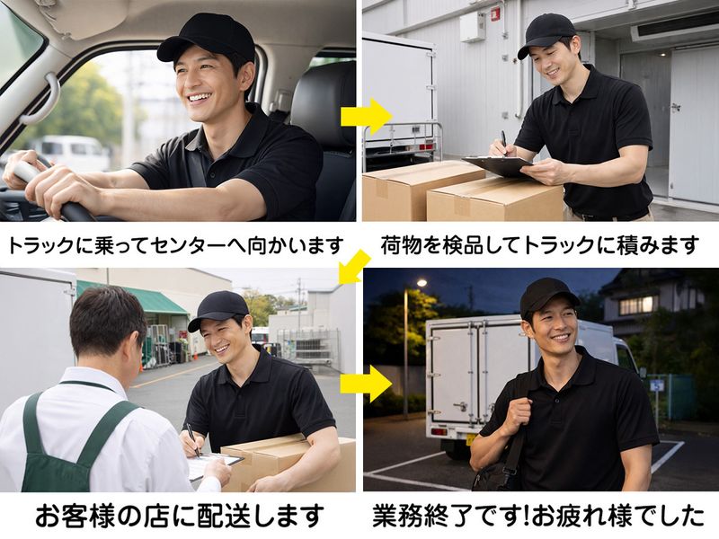 仕事内容: 軽トラック(冷凍車)で 飲食店などへ食品を配送するお仕事です。 配送先は飲食店や店舗が中心。 個人宅への配送はありません。 また、 仕事の8割以上は定期便のため 安定して仕事があります! ✅回った分だけ収入アップ この仕事は 配送件数=収入につながります。 「体を動かすのが好き」 「しっかり働いて稼ぎたい」 そんな方にはピッタリ。 実際に 月収80万円以上の先輩も在籍しています。 ✅初期費用は一切ナシ ・車両貸出あり ・ガソリンカード貸出 ・ETCカード貸出 車がなくても すぐに仕事を始められます! ※ETCカード利用分は報酬から精算