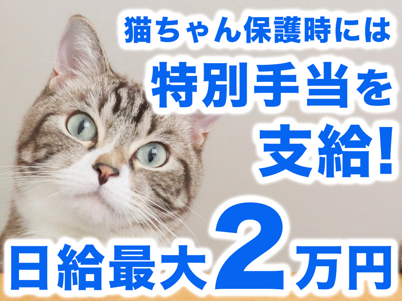 【猫を見つけるレア求人】未経験歓迎/日給最大2万円